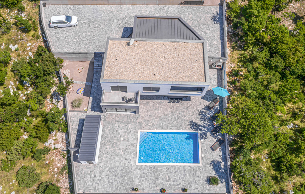 Dehors, la grande terrasse avec piscine vous invite à vous détendre au soleil. Depuis l'un des balcons, une vue spectaculaire sur l'île de Krk et la baie de Kvarner s'offre à vous - idéal pour laisser le quotidien derrière soi.