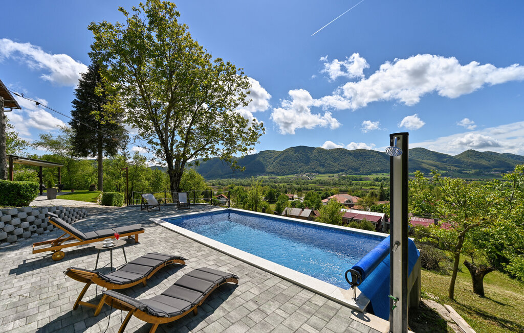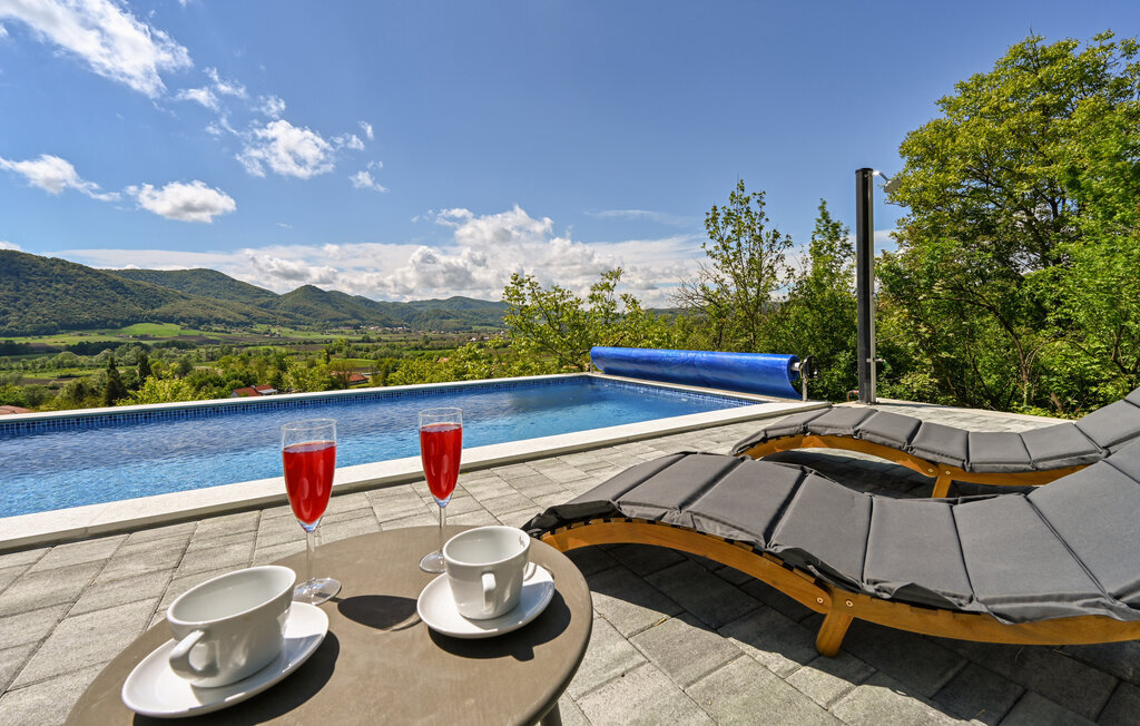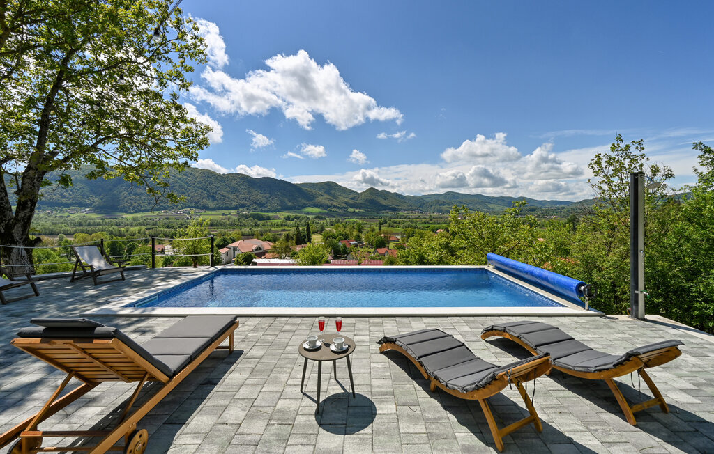 Bien-être à l'extérieur : Location de vacances disposant de chaises-longues et d'un ou plusieurs équipements tels que piscine extérieure, jacuzzi extérieur, lit à baldaquin de jardin etc...