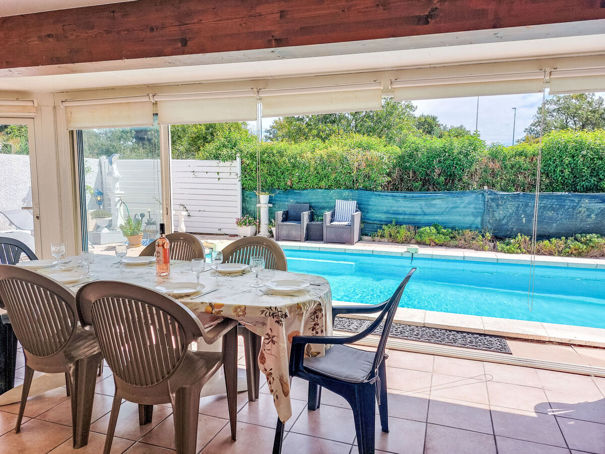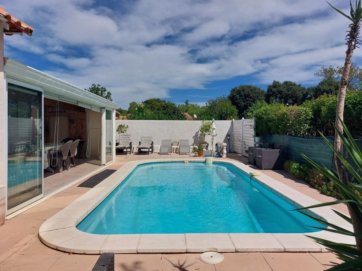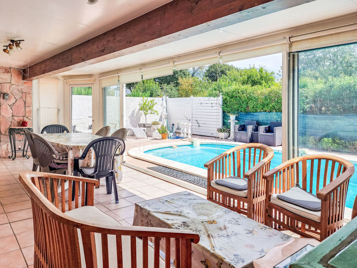 A usage privé: terrain 550 m2, piscine à l'abri des regards (7 x 4 m, profondeur 90 - 170 cm, disponibilité saisonnière: 15.Mai.