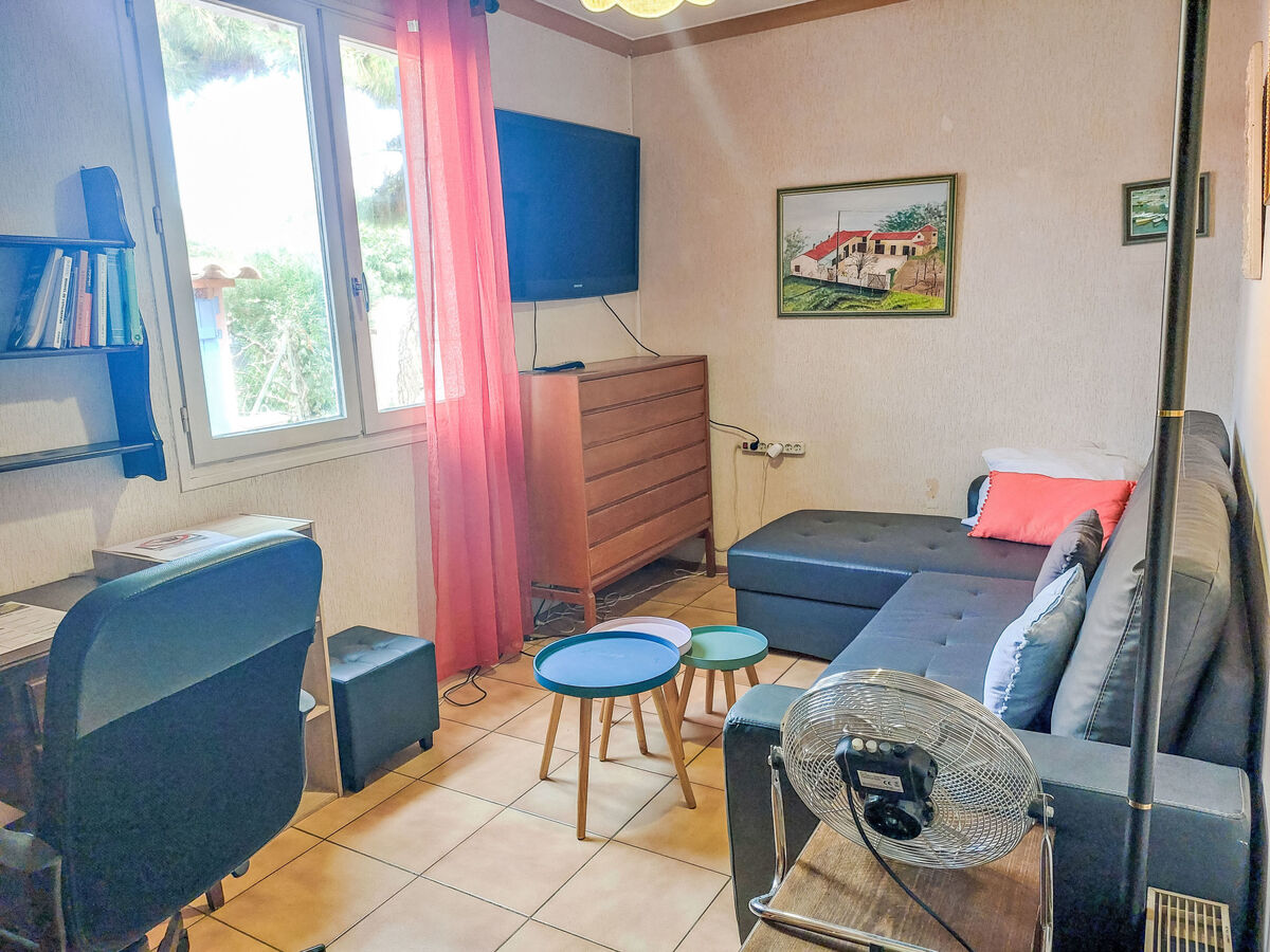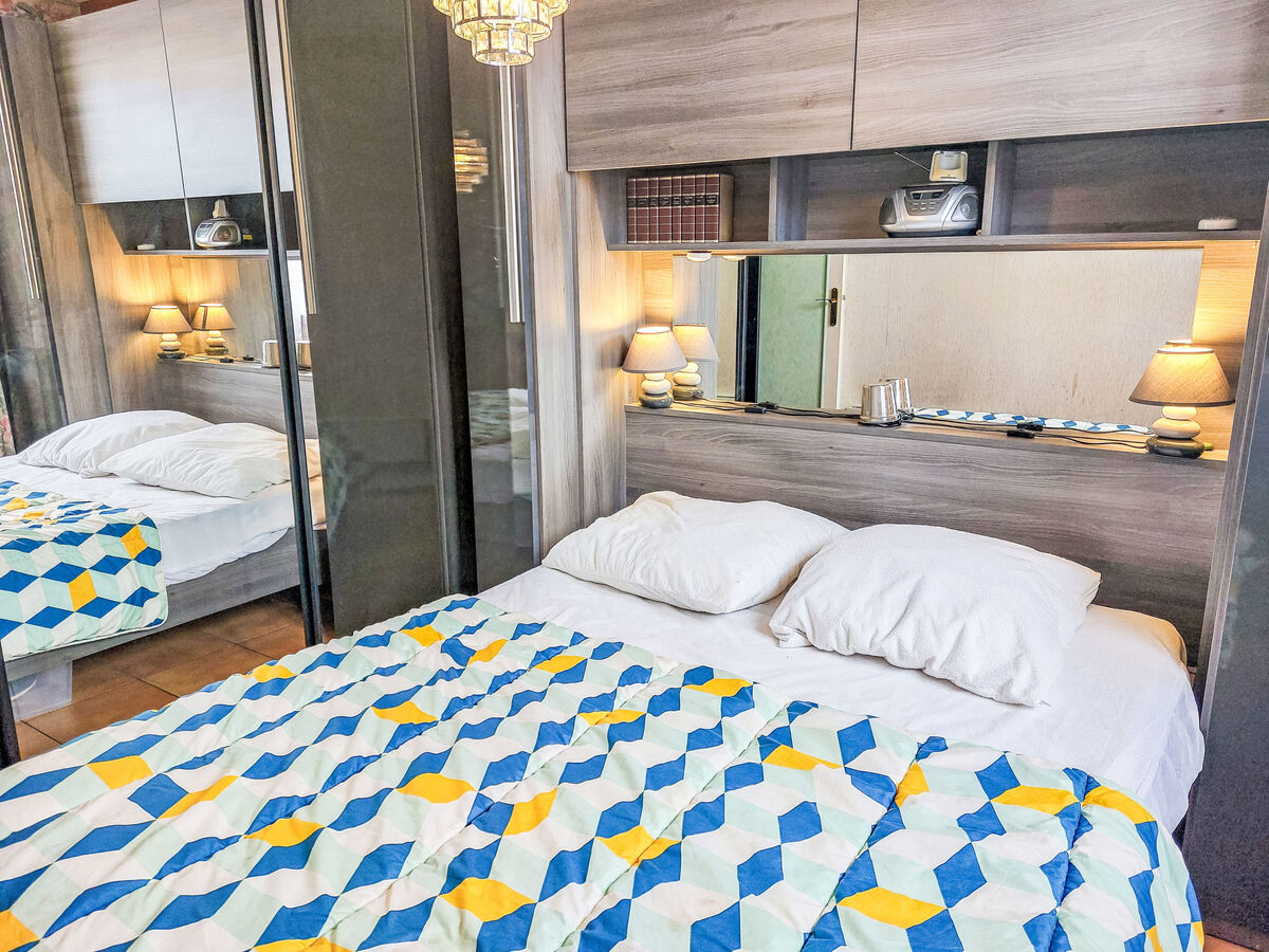 1 chambre avec 1 divan-lit double (160 cm, longueur 200 cm), TV (écran plat).
