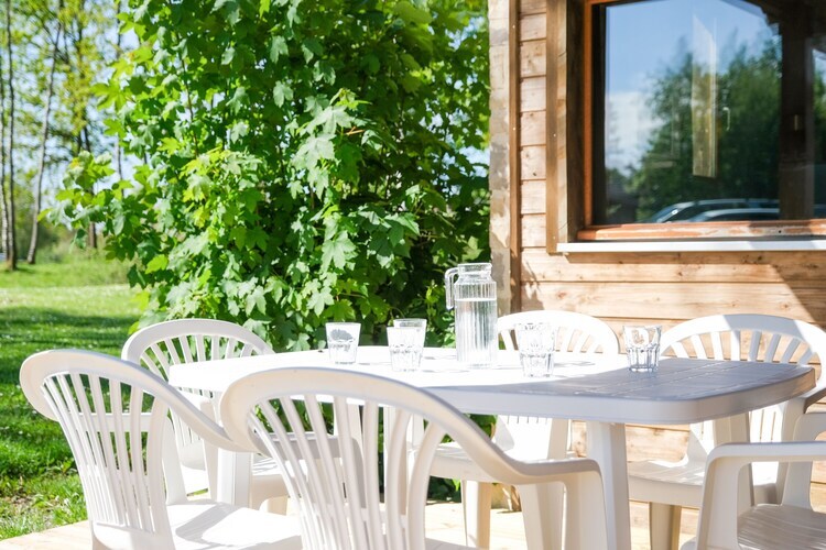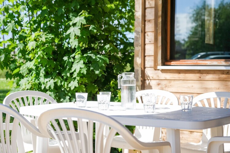Rez-de-chaussée: (salon(8 m2)(canapé-lit double, TV(cable), poêle(bois), jeux de société), cuisine(8 m2)(plaque de cuisson(vitrocéramique), cafetière/percolateur(pads), micro ondes, lave-vaisselle , réfrigérateur), chambre(lit double(160 x 190 cm)), chambre(lit simple(90 x 190 cm), lit simple(90 x 190 cm)), salle de bains(douche, lavabo), WC, terrasse(privé, couverte)) Bain à bulles(partagé avec d'autres clients), mobilier de jardin, piscine(partagé avec d'autres clients, chauffée, couverte, ouvert de Mars jusqu'à (inclus) Nov)