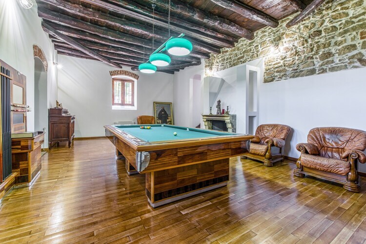 Rez-de-chaussée: (Salle de séjour(coin salon), cuisine(foyer, bouilloire, grille-pain, plaque de cuisson, hotte, cafetière/percolateur, four, combinaison réfrigérateur/congélateur, Presse-agrumes), chambre(lit simple, lit simple), chambre(lit double), chambre(lit double), chambre(lit double), chambre(lit double), salle de bains(douche, lavabo, WC, bidet), salle de bains(douche, lavabo, WC, bidet), salle de bains(spa nordique, douche, lavabo, lavabo, WC, bidet), salle de jeux(billard), climatisation) jardin, mobilier de jardin, parking, piscine(privé)
