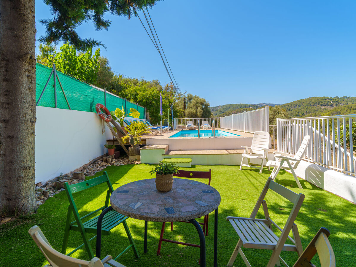 Belle vue sur les montagnes, la piscine, le jardin, les alentours et la forêt.