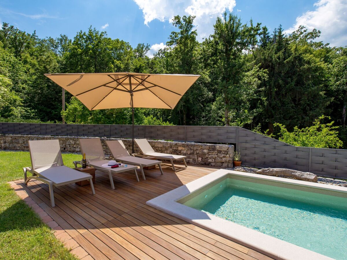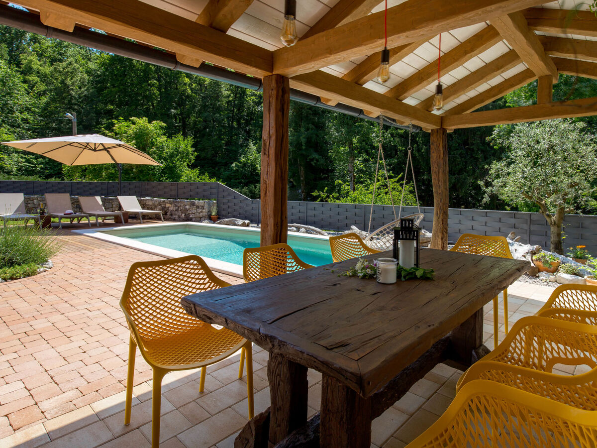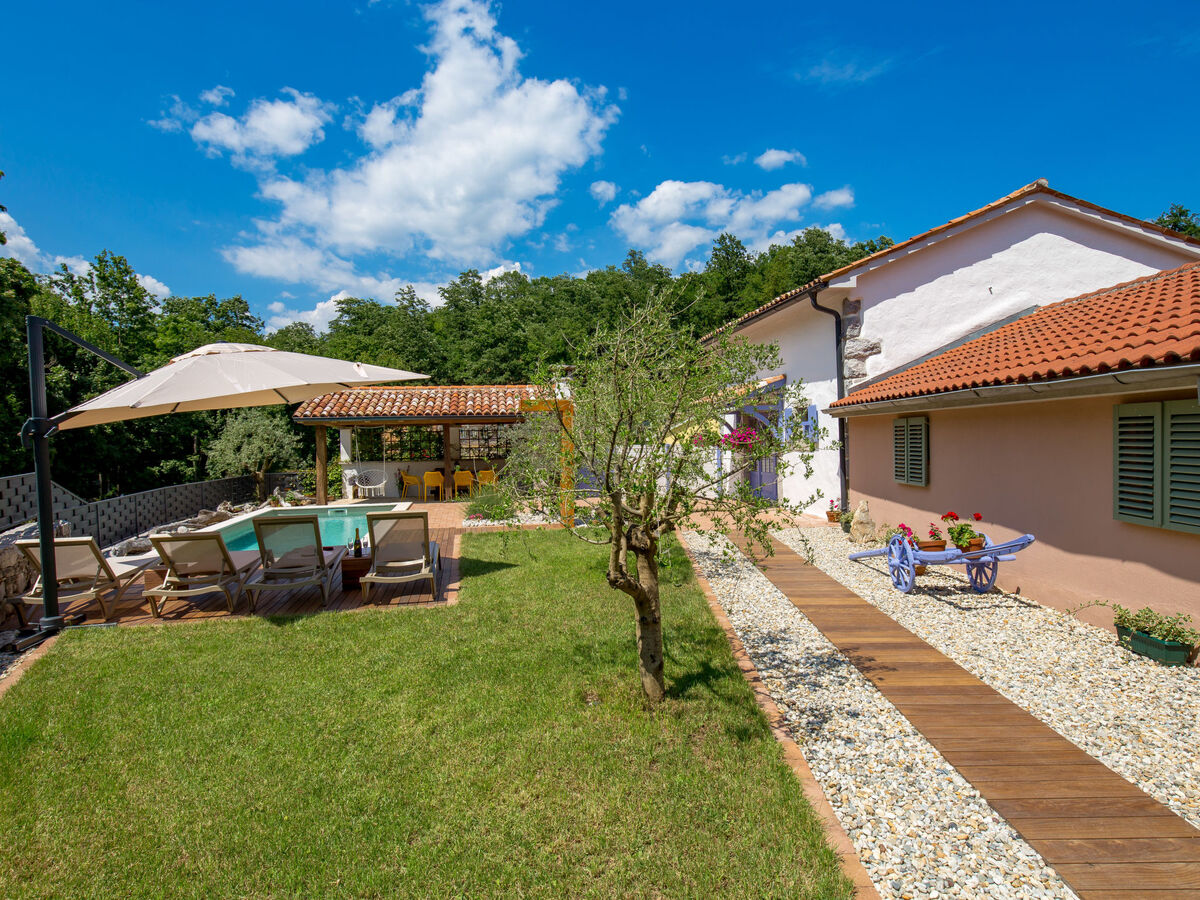 Dans le hameau de Škalniški avec 6 maisons, à 4 km du centre de Jurdani, à 8 km du centre de Matulji, à 10 km du centre d'Opatija, situation tranquille, ensoleillée, à 11 km de la mer, dans une impasse, dans la verdure, dans la forêt.