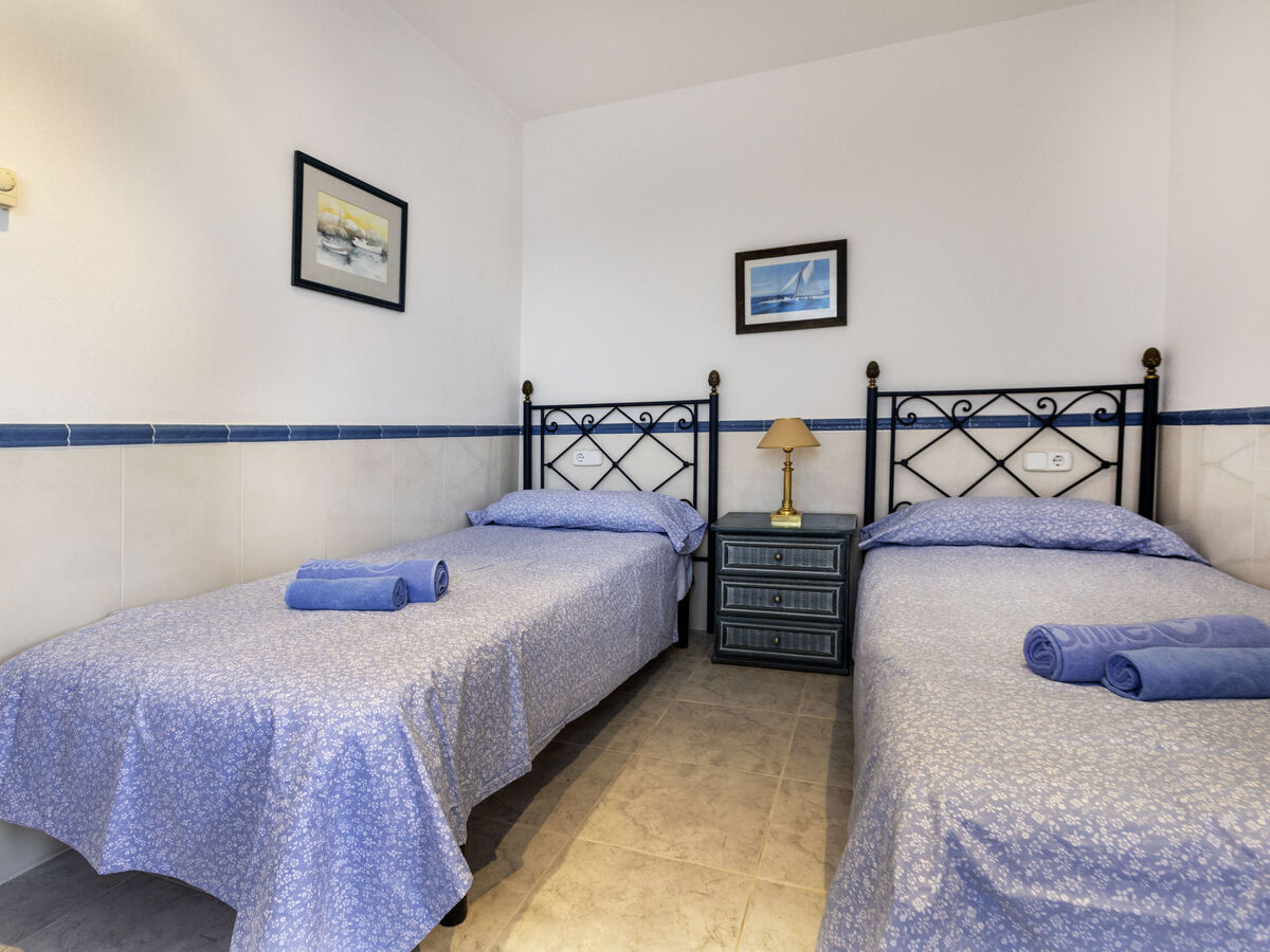 À l'étage inférieur: 1 chambre avec 2 lits (90 cm, longueur 200 cm), air-conditionné.