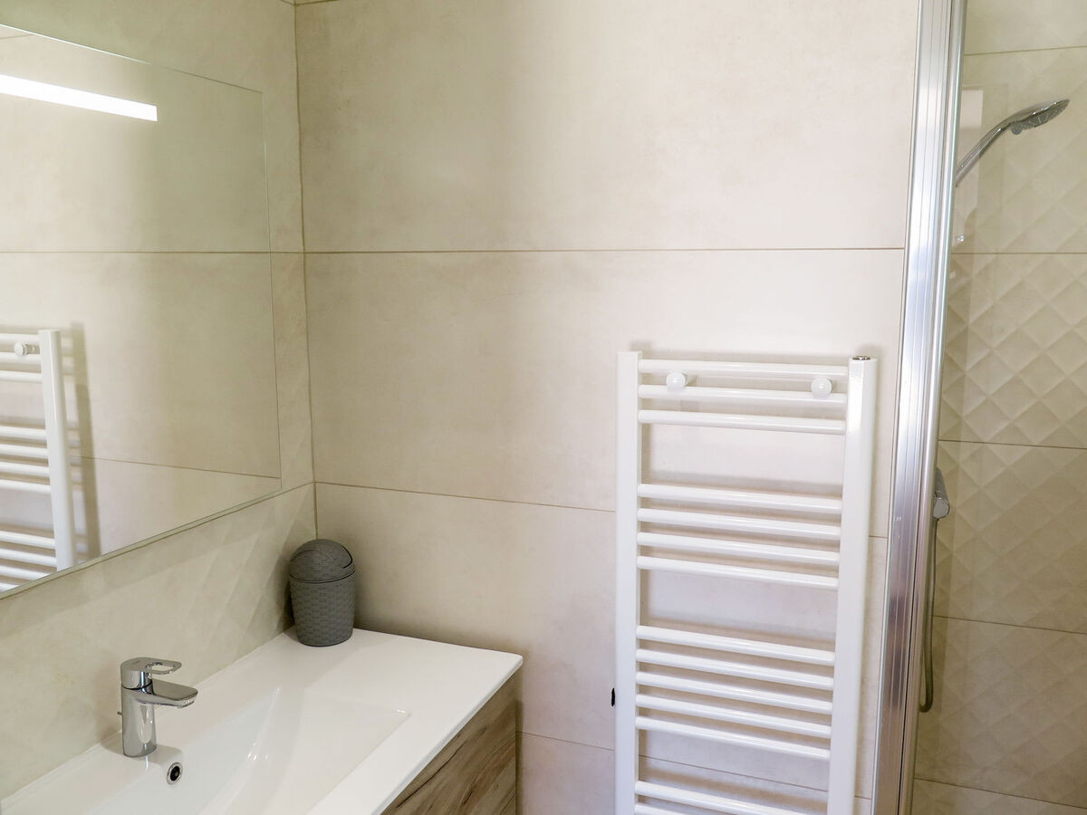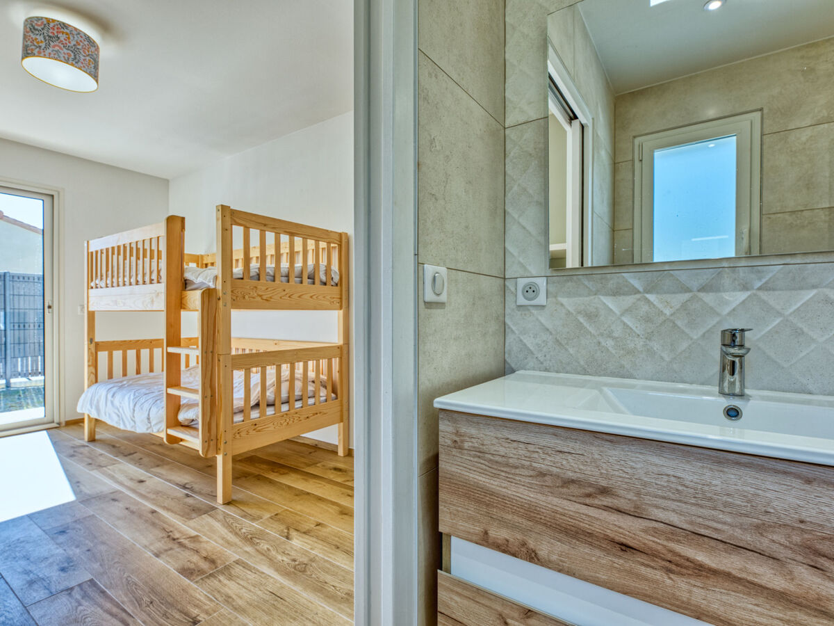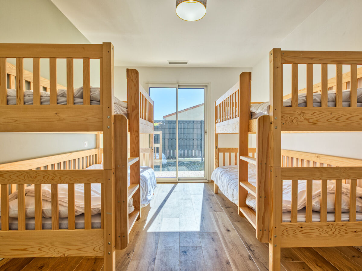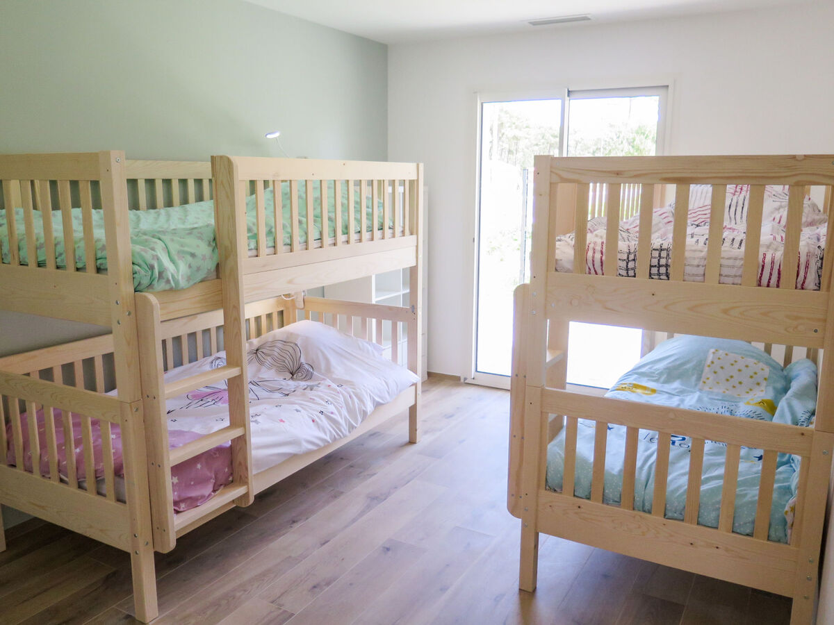 1 chambre avec 2 x 2 lits superposés (90 cm, longueur 190 cm), douche.