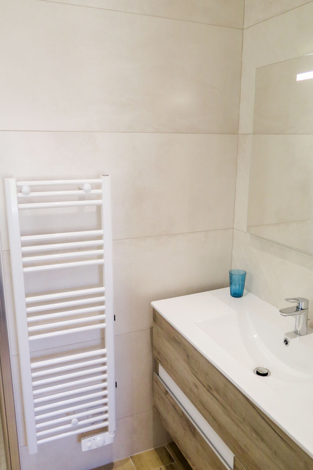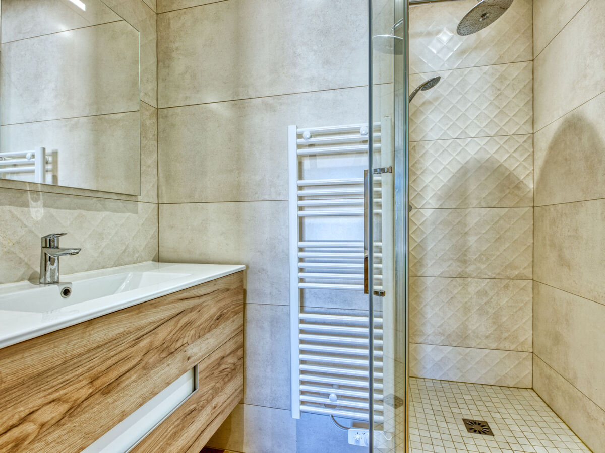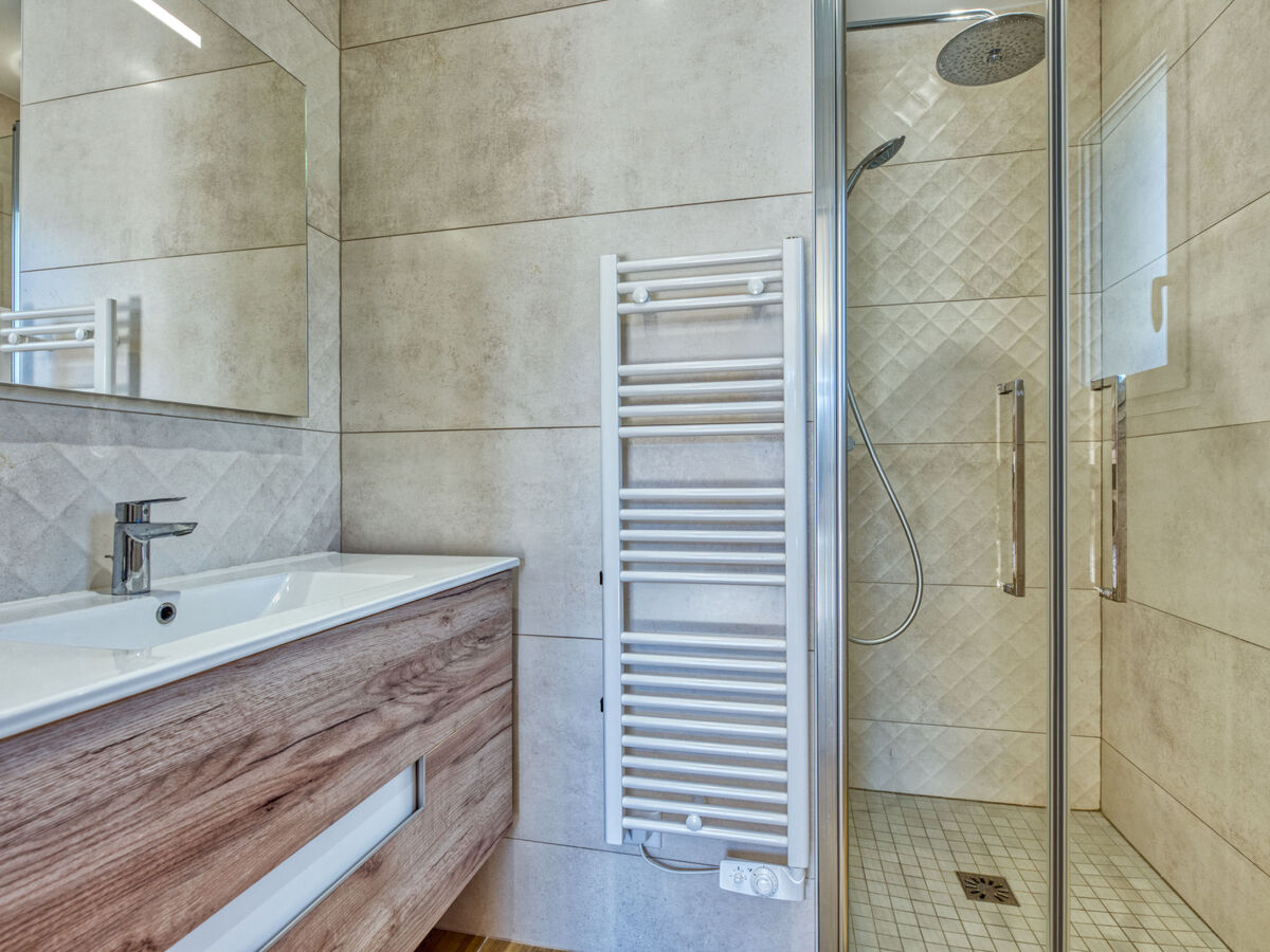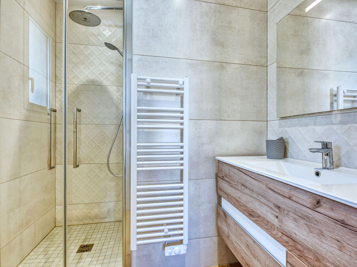 1 chambre avec 2 x 2 lits superposés (90 cm, longueur 190 cm), douche.