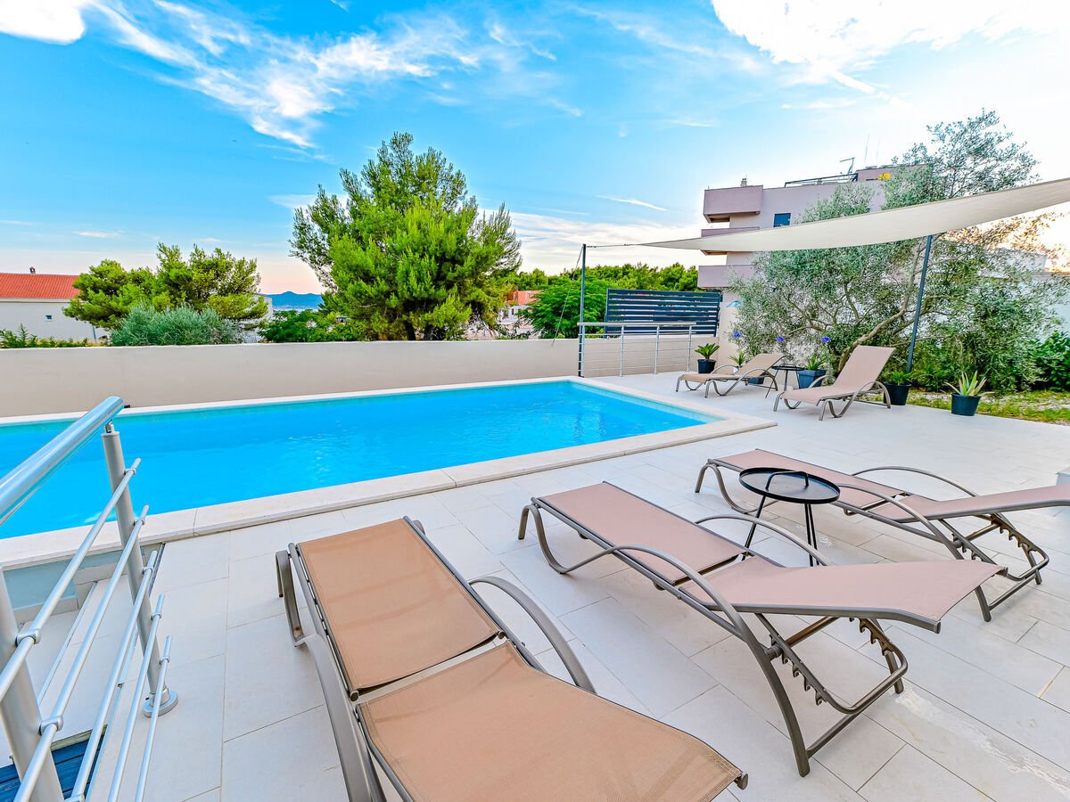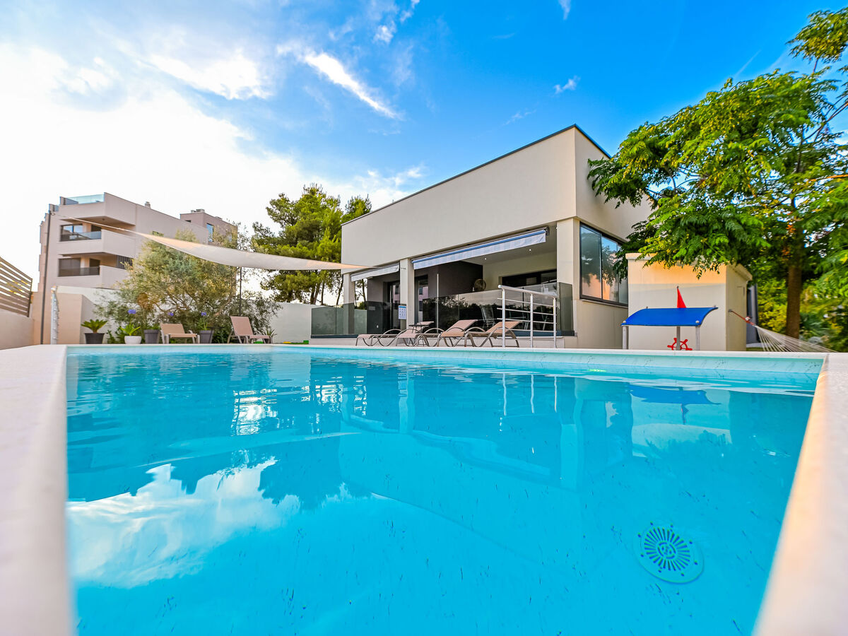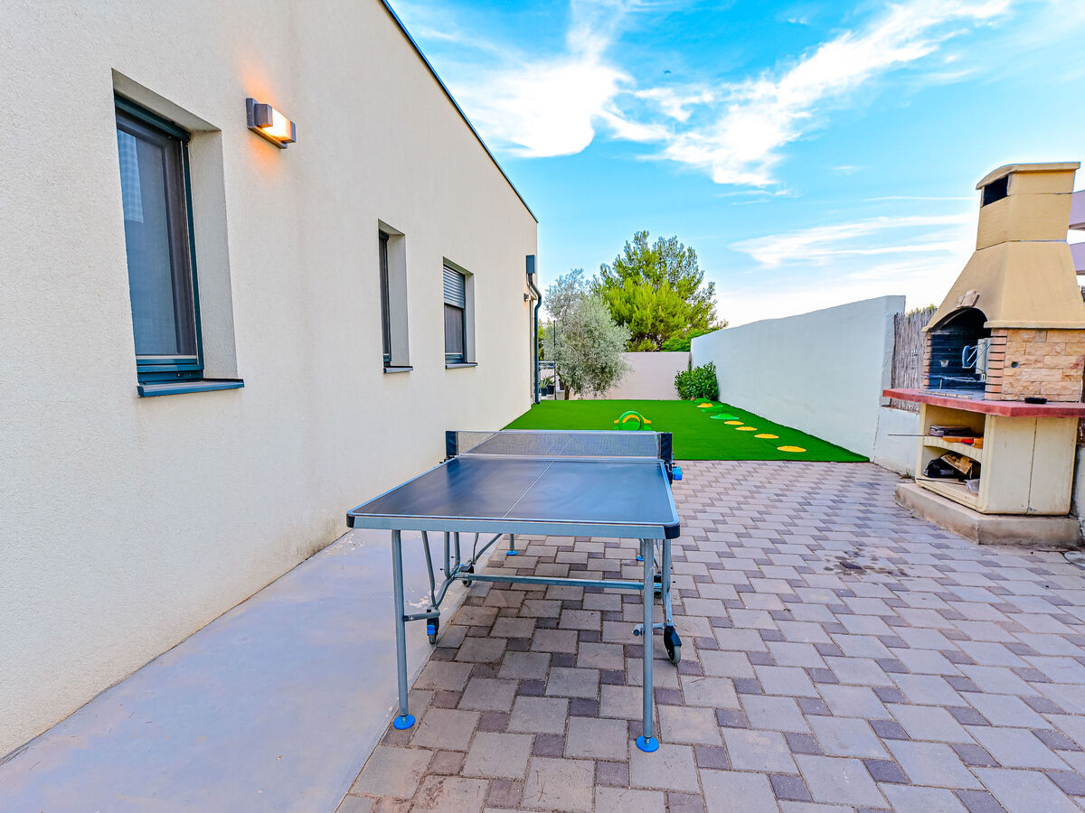 A usage privé: terrain 400 m2 (clôturé), piscine rectangulaire (8 x 4 m, profondeur 150 cm, disponibilité saisonnière: 01.Mai.