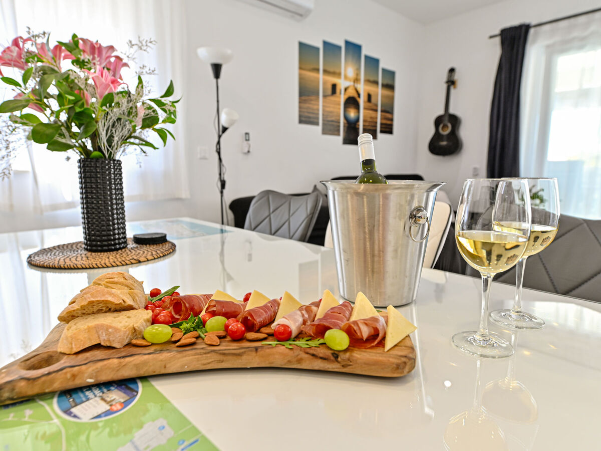 Cuisine ouverte (four, lave-vaisselle, 4 plaques vitrocéramiques, micro-ondes, congélateur, cafetière électrique).