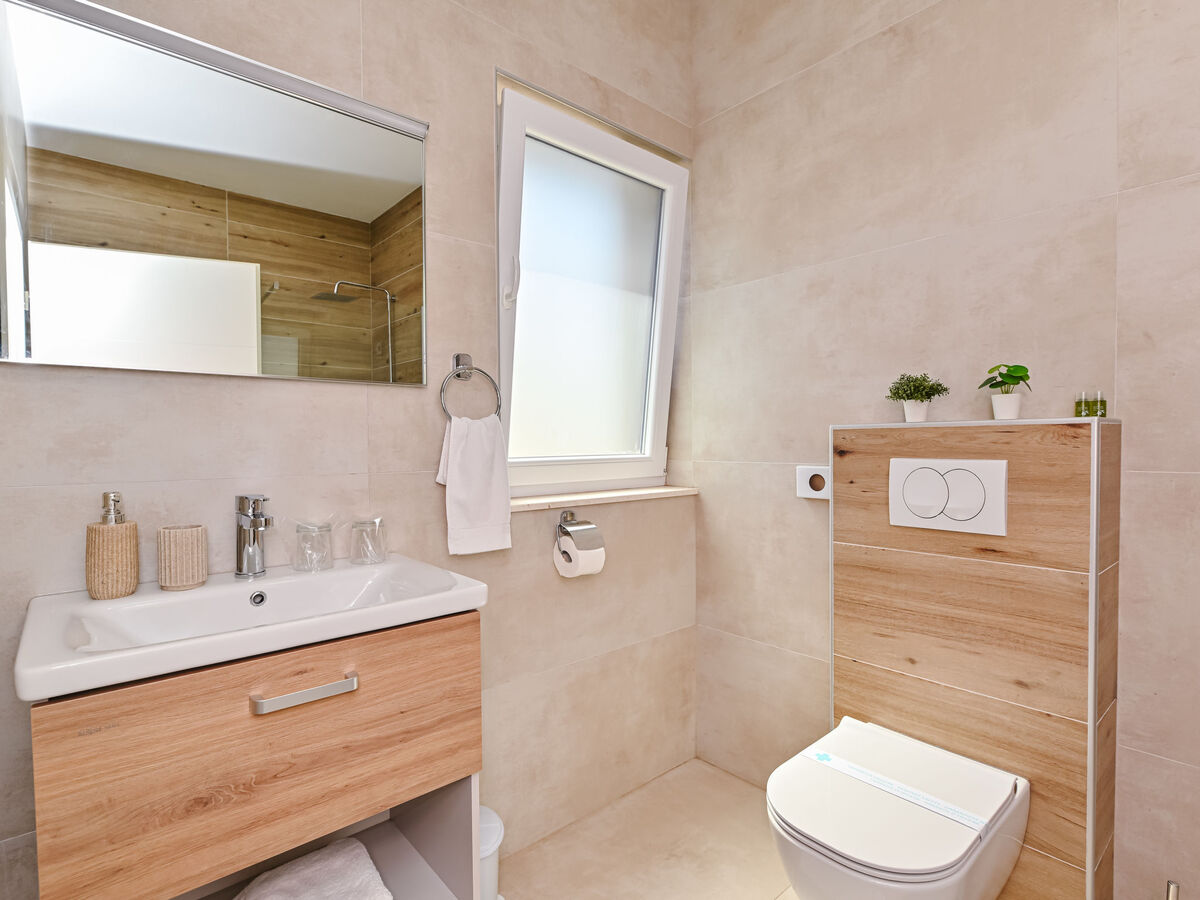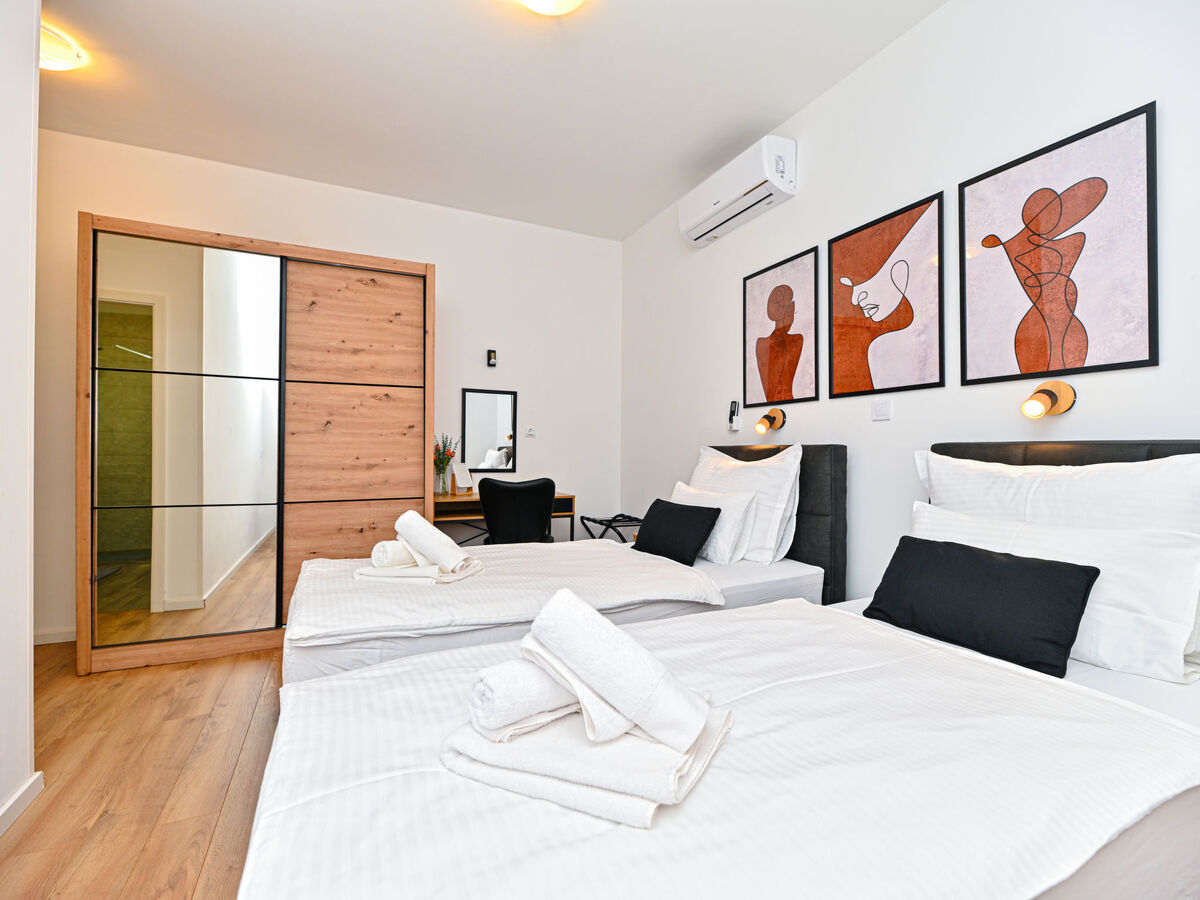 1 chambre avec 2 lits (90 cm, longueur 200 cm), douche/WC et air-conditionné.