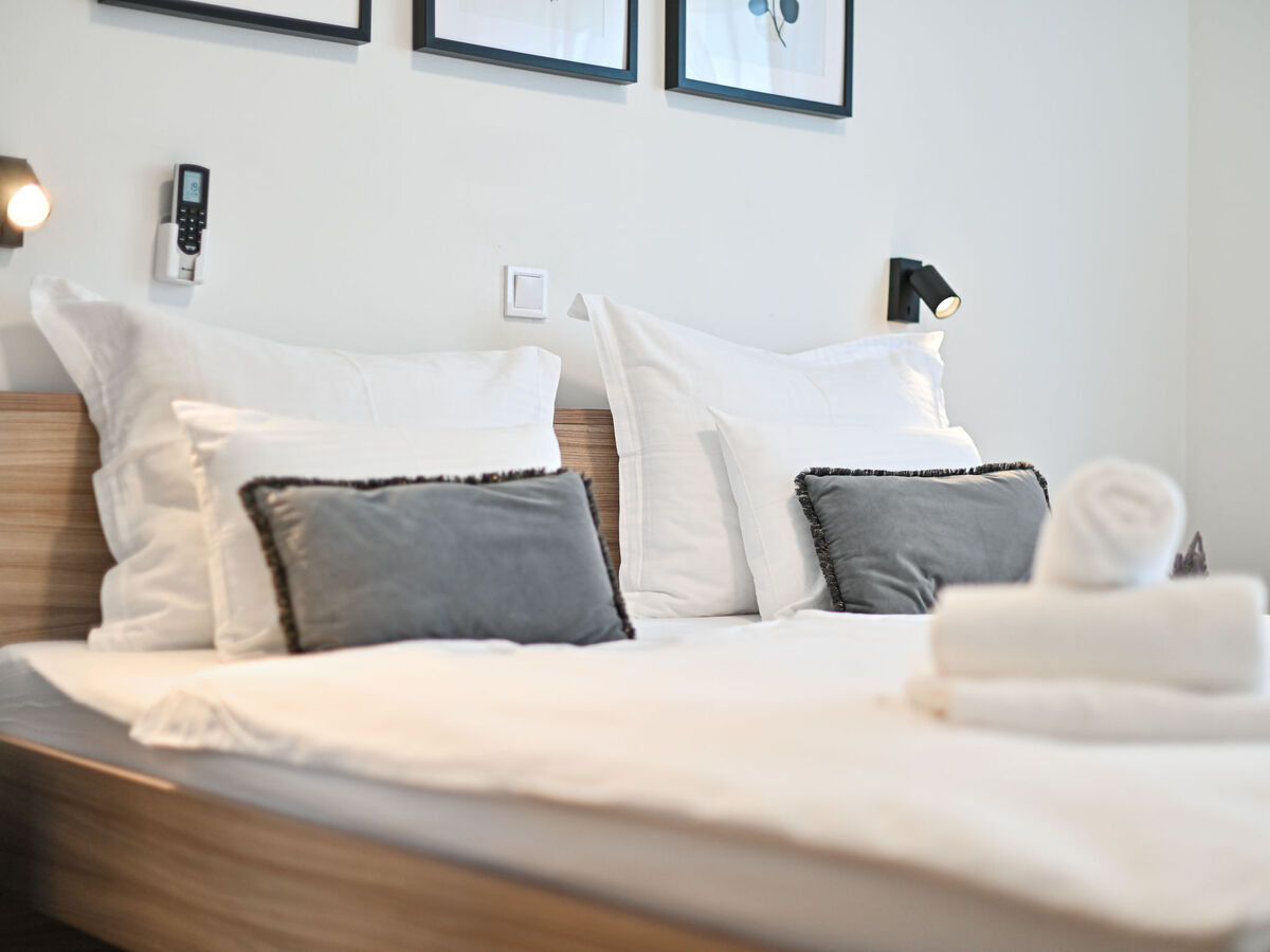 2 chambres, chaque chambre avec: 1 grand-lit (180 cm, longueur 200 cm), douche/WC et air-conditionné.
