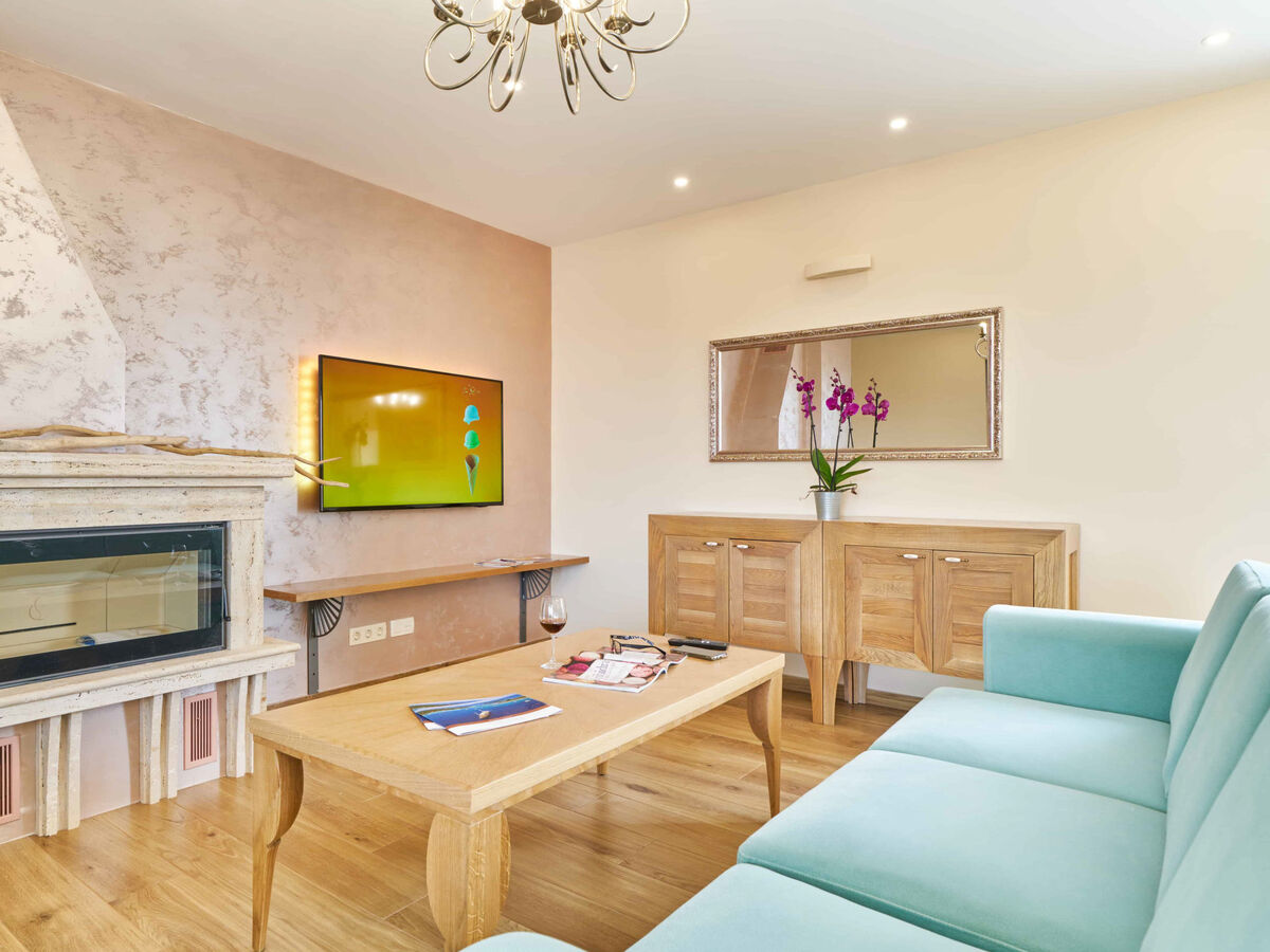 Spacieux, aménagement agréable: séjour/salle à manger avec cheminée et TV (satellite) (écran plat), air-conditionné.