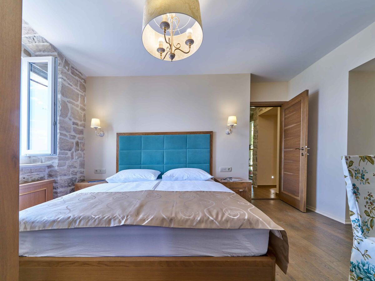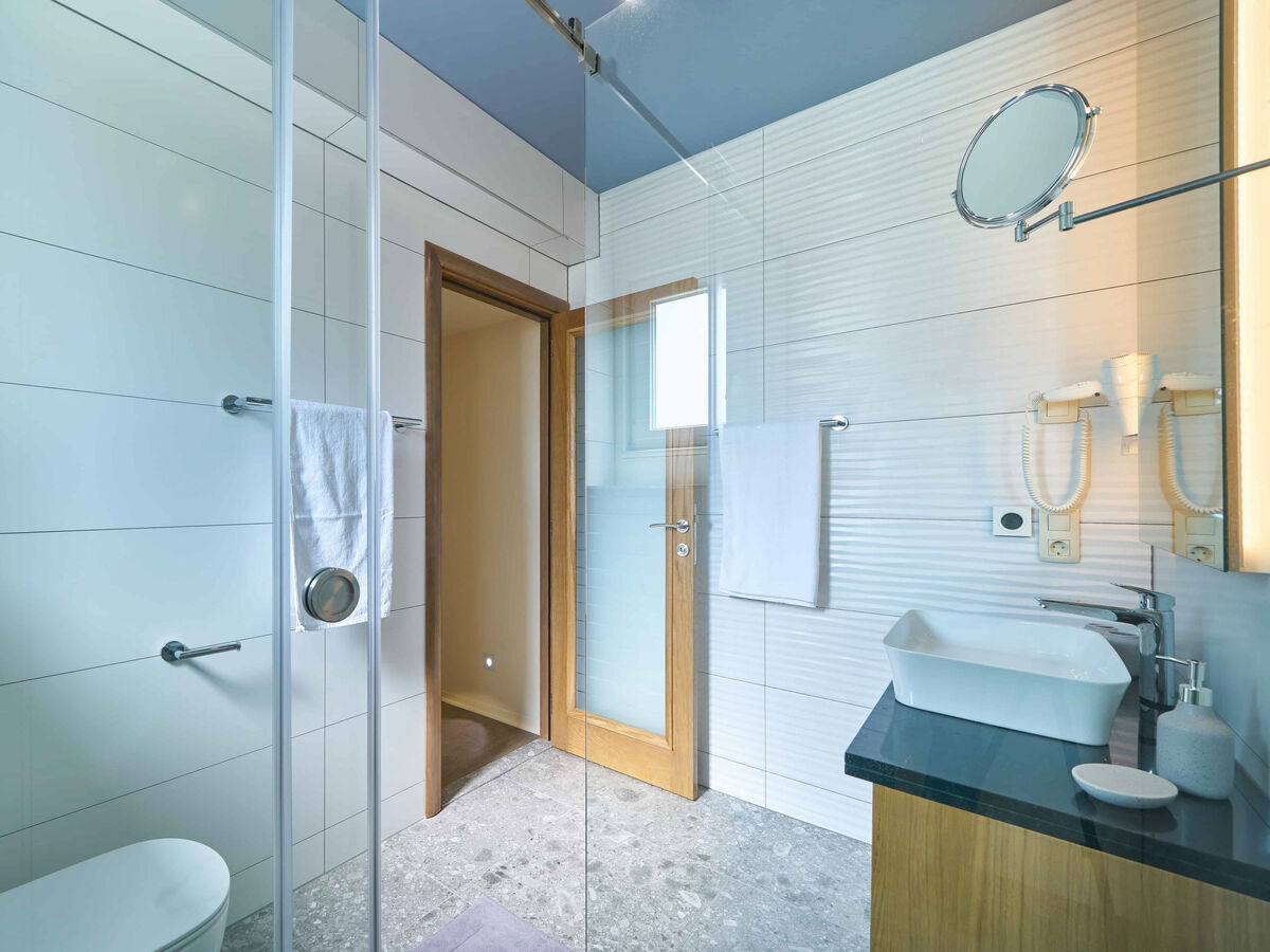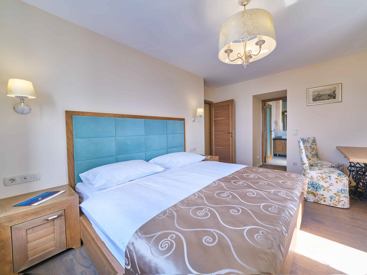 2 chambres, chaque chambre avec: 1 grand-lit (180 cm, longueur 200 cm), douche/WC et TV (satellite) (écran plat).