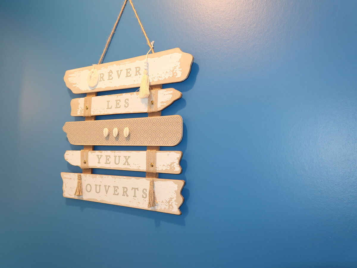 1 chambre, mansardée avec 1 grand-lit (140 cm, longueur 190 cm).