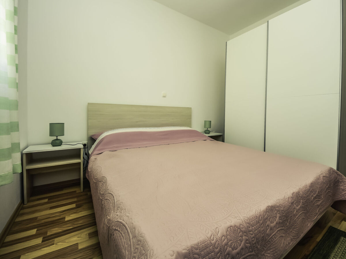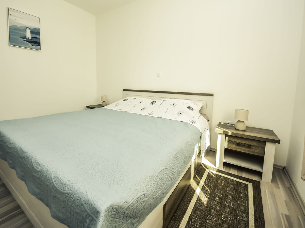 1 chambre avec 1 grand-lit (180 cm, longueur 200 cm).