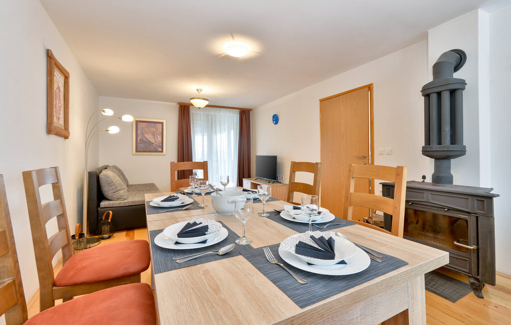 La maison est aménagée de manière confortable et offre à ses hôtes l'équipement adéquat pour des vacances réussies. La maison peut accueillir 8 personnes dans 3 chambres à coucher. Vous pourrez vous y sentir à l'aise en toute saison. Grâce à la climatisation, les températures sont agréables même pendant les étés chauds. Le soir, vous pouvez vous installer confortablement autour du poêle à bois et passer en revue la journée.