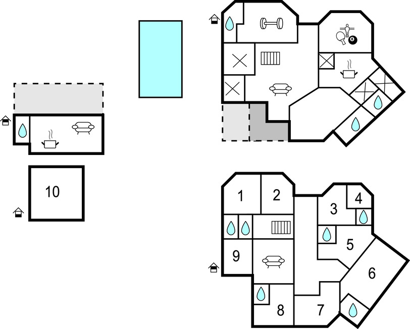 Location de vacances avec activités : Cette location de vacances comprend un ou plusieurs équipements de loisir (ping-pong, billard, baby-foot...)