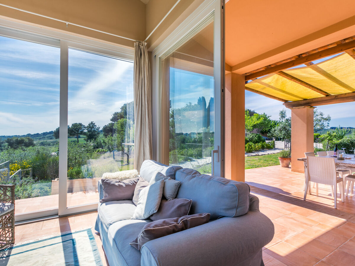 Clair, complètement rénovée en 2021, aménagement confortable et de bon goût: séjour avec jardin d'hiver.