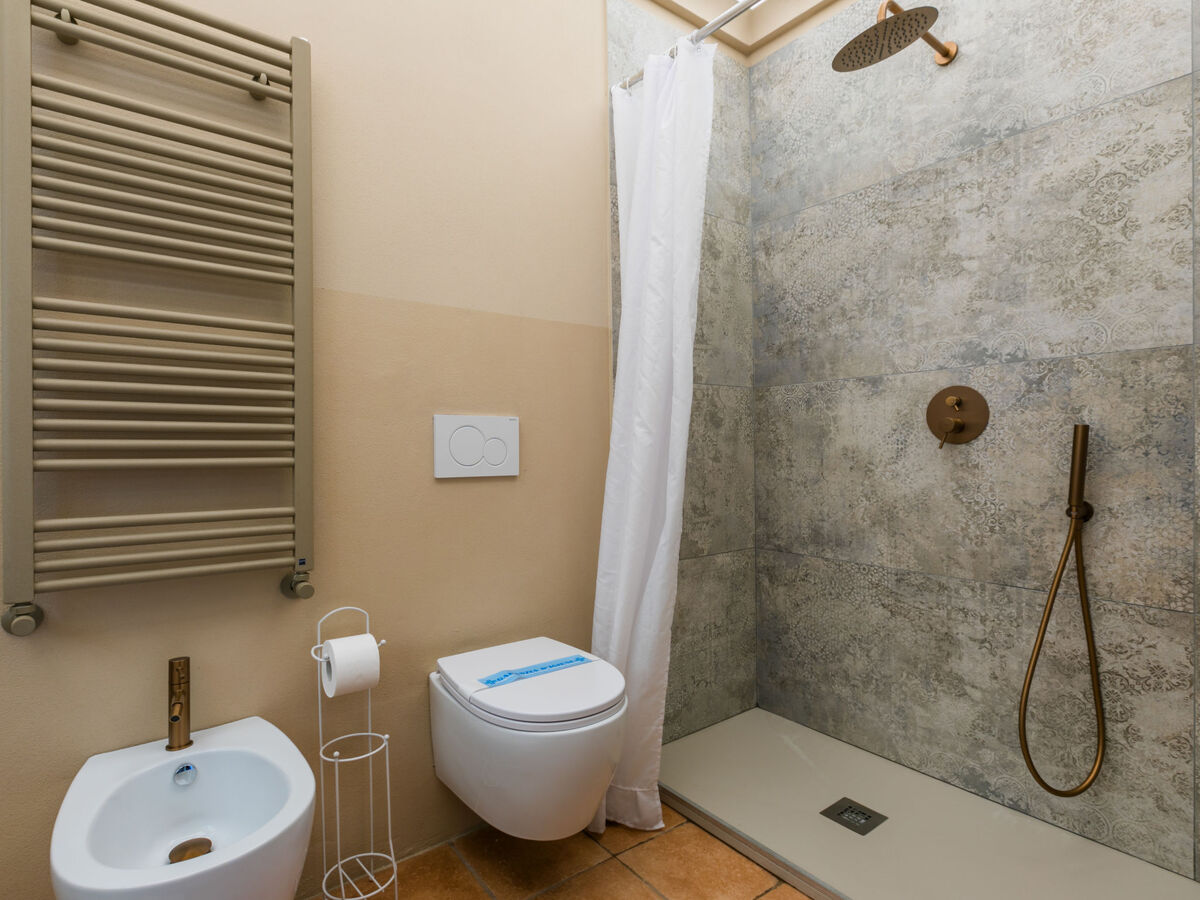 À l'étage inférieur: 2 chambres doubles, chaque chambre avec: douche/bidet/WC.