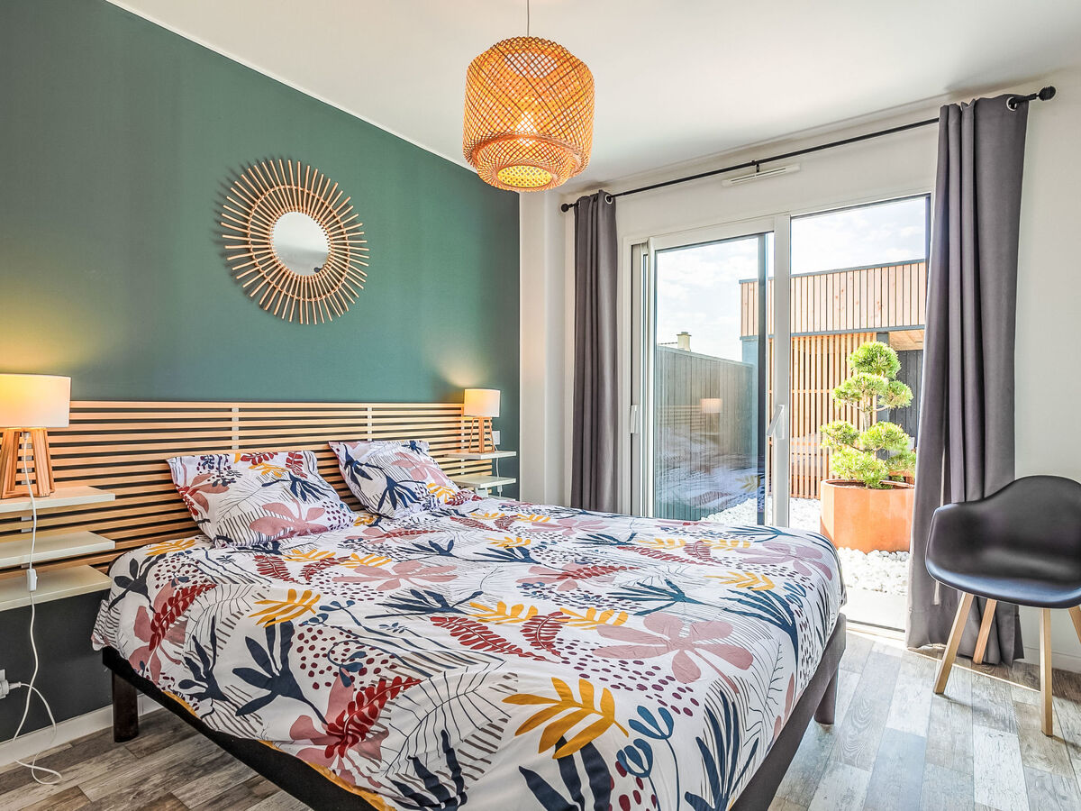 1 chambre avec 1 grand-lit (160 cm, longueur 200 cm).