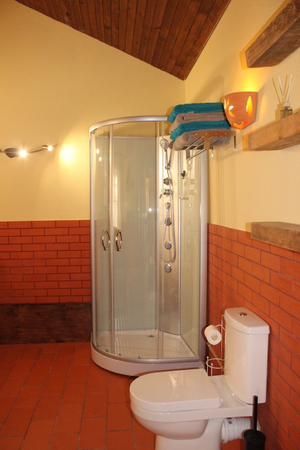 Douche/WC, double vasque.