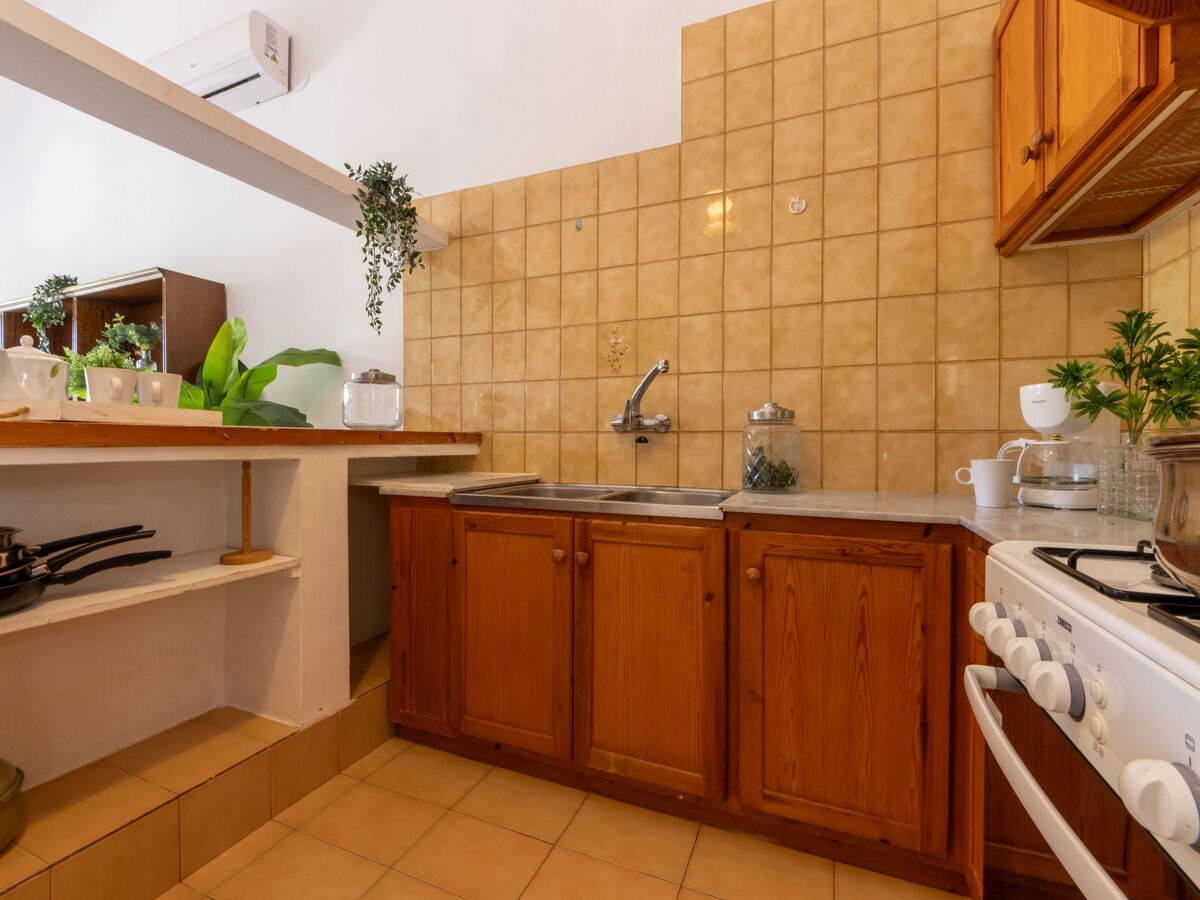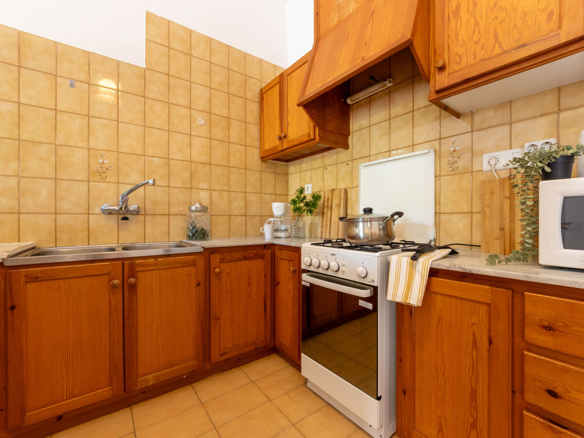 Cuisine ouverte (4 plaques de cuisson, four, grille-pain, bouilloire électrique, micro-ondes, cafetière électrique) avec bar.