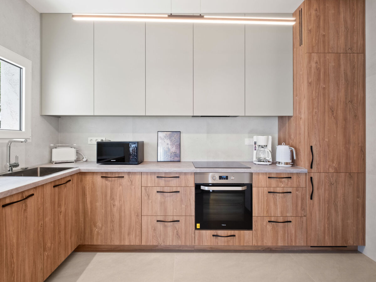 Cuisine (four, 4 plaques vitrocéramiques, grille-pain, bouilloire électrique, micro-ondes, cafetière électrique).
