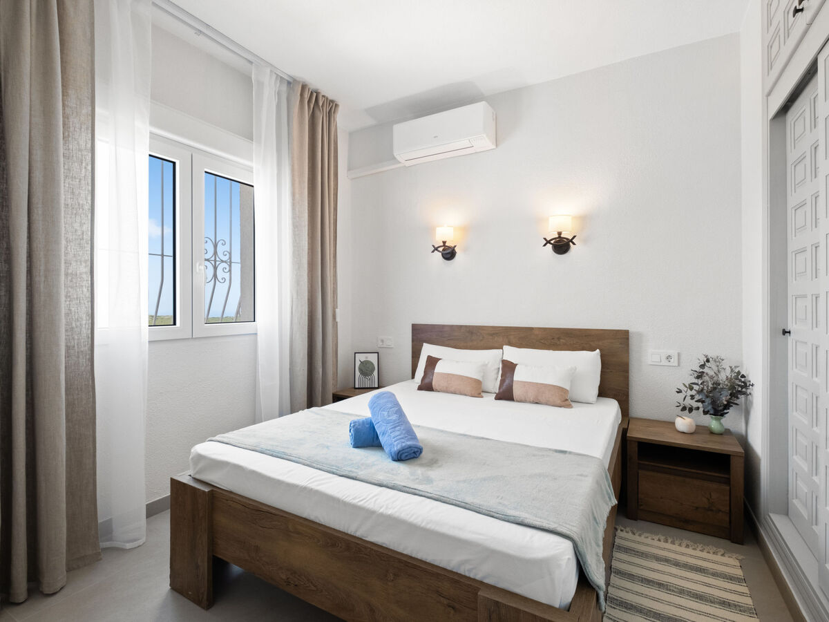 À l'étage inférieur: 1 chambre avec 1 grand-lit (1 x 140 cm, longueur 200 cm), air-conditionné et chauffage à air chaud.