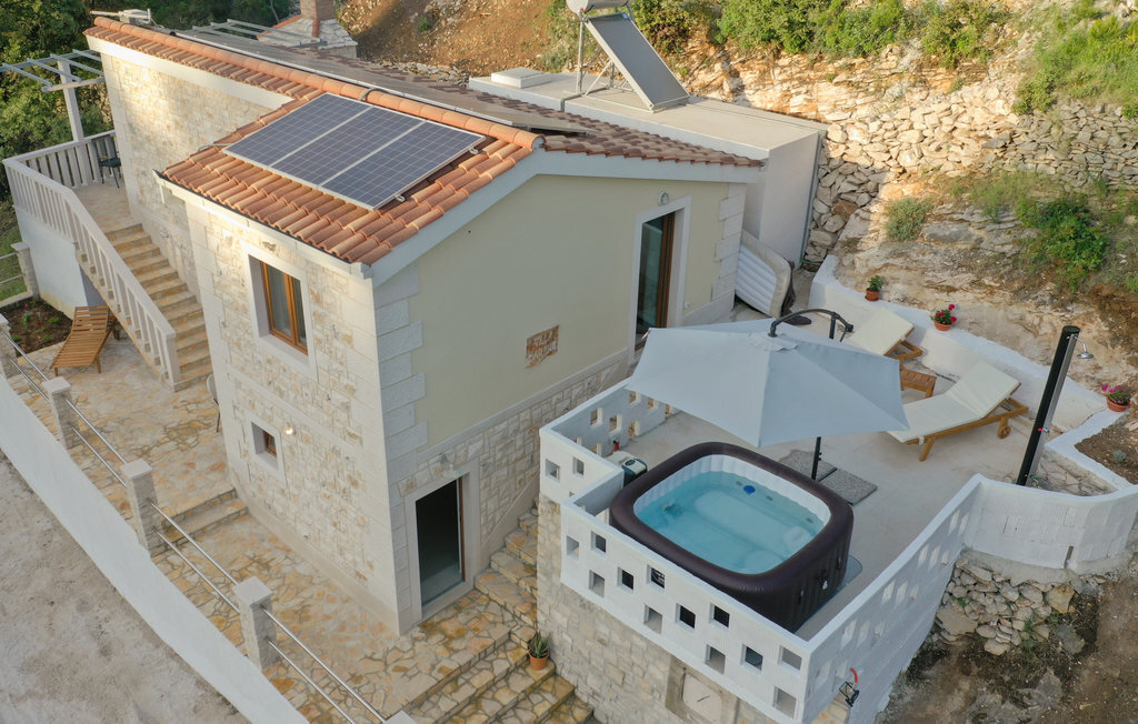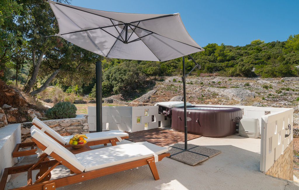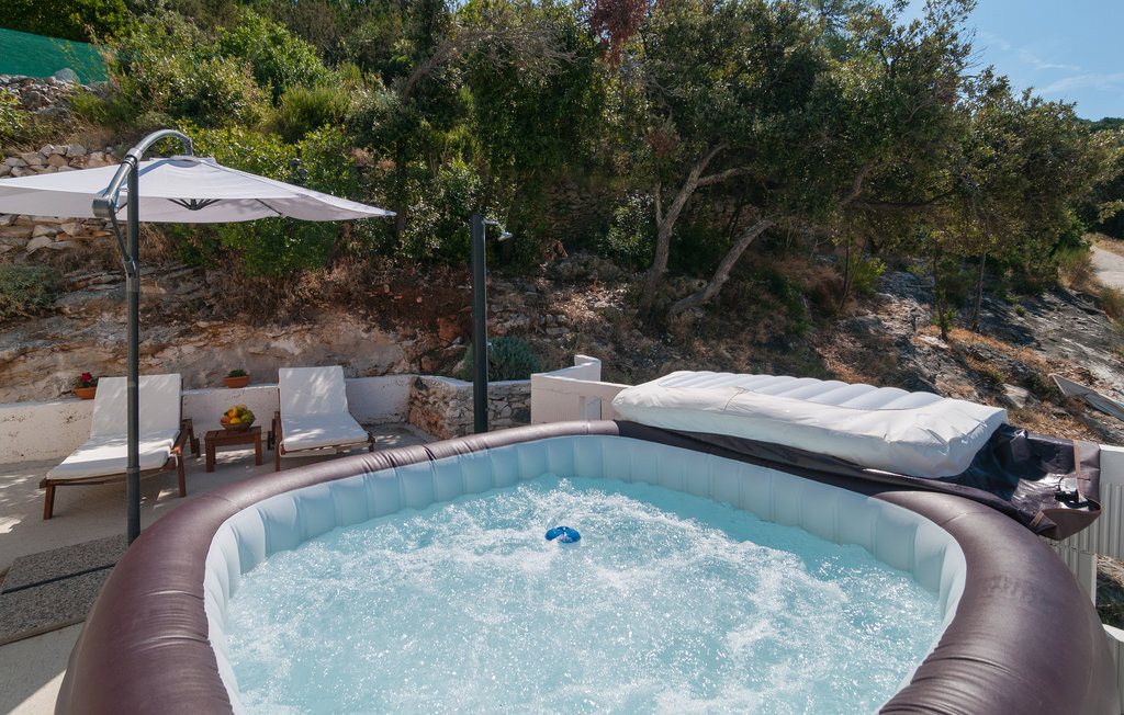 Bien-être à l'extérieur : Location de vacances disposant de chaises-longues et d'un ou plusieurs équipements tels que piscine extérieure, jacuzzi extérieur, lit à baldaquin de jardin etc...