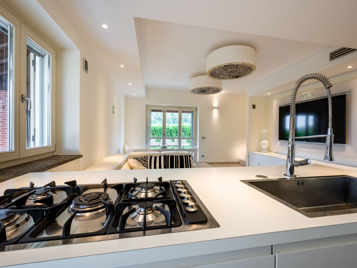 Cuisine ouverte (four, lave-vaisselle, 5 plaques à induction, grille-pain, bouilloire électrique, congélateur, cafetière électrique).