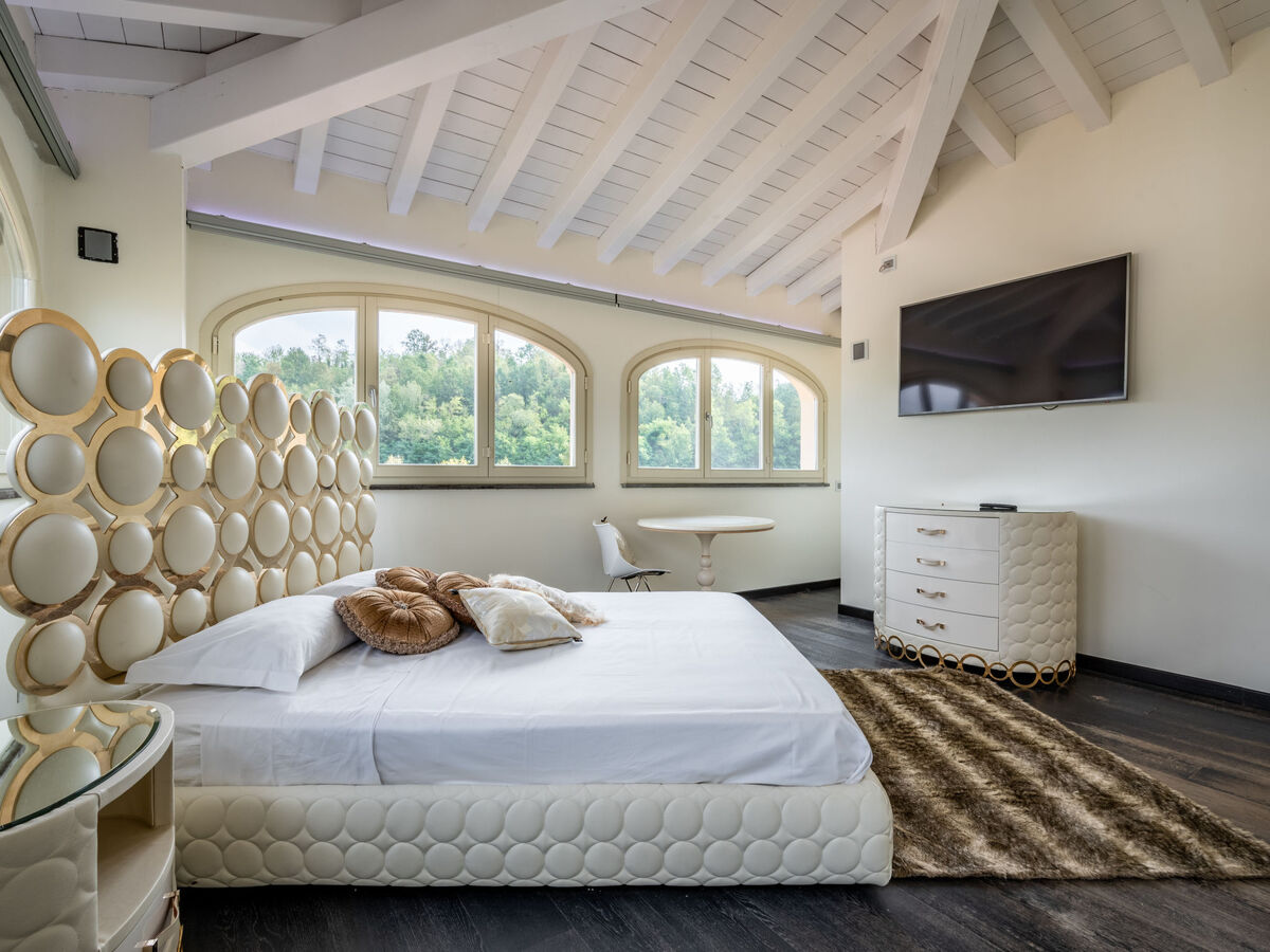 À l'étage supérieur: 1 chambre avec Dressing avec 1 grand-lit (160 cm), douche/bidet/WC.