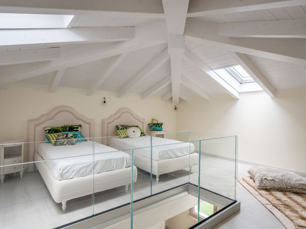 (escalier sans rampe) 1 chambre, ouverte avec 2 lits (100 cm, longueur 200 cm), air-conditionné.