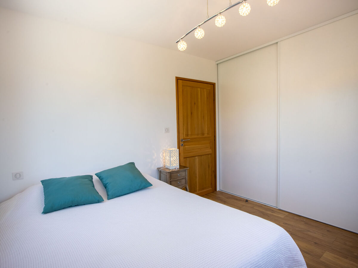 À l'étage supérieur: 1 chambre avec 1 grand-lit (160 cm, longueur 200 cm), TV (écran plat).