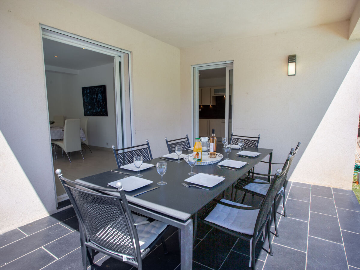 Dans le quartier de La Favière, situation tranquille dans un quartier résidentiel, à 550 m de la mer, à 550 m de la plage.