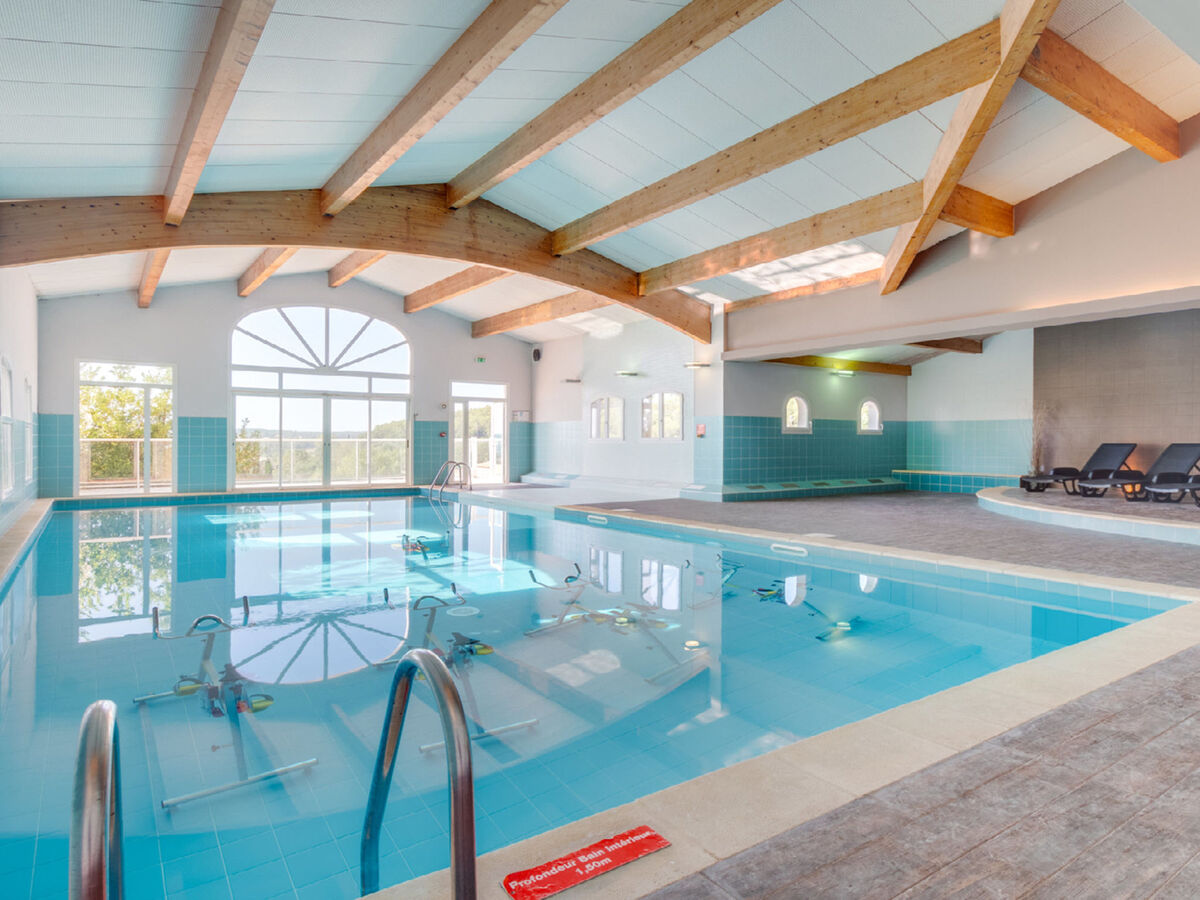 A usage privé: terrain 400 m2 (clôturé), jardin, piscine (8 x 4 m, disponibilité saisonnière: 01.Mai.