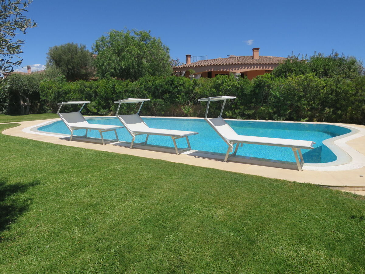 A usage privé: grand, beau jardin avec pelouse et plantes, piscine en forme d’haricot (13 x 5 m, disponibilité saisonnière: 01.Mai.