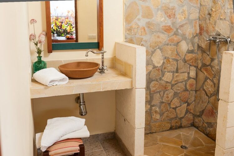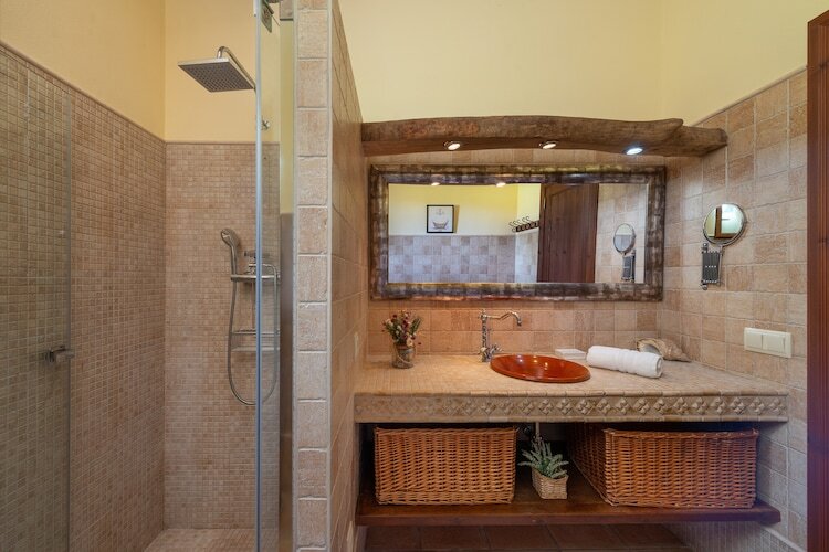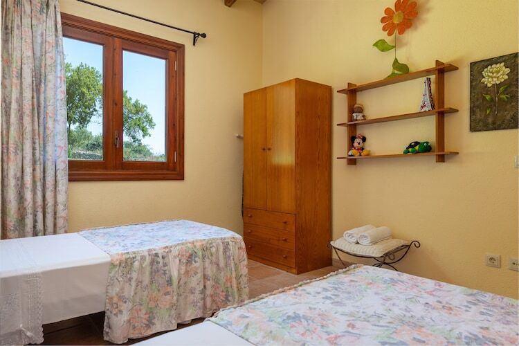La casa de 120 m2 distribuidos en 1 sola planta, tiene 3 habitaciones, 1 equipado con dos camas individuales, y los otros 2 tienen una cama de matrimonio cada uno. Hay disponibilidad para una cuna. Hay 2 baños con ducha, y uno de ellos se encuentra en una habitación separada de la casa, al lado de la piscina.