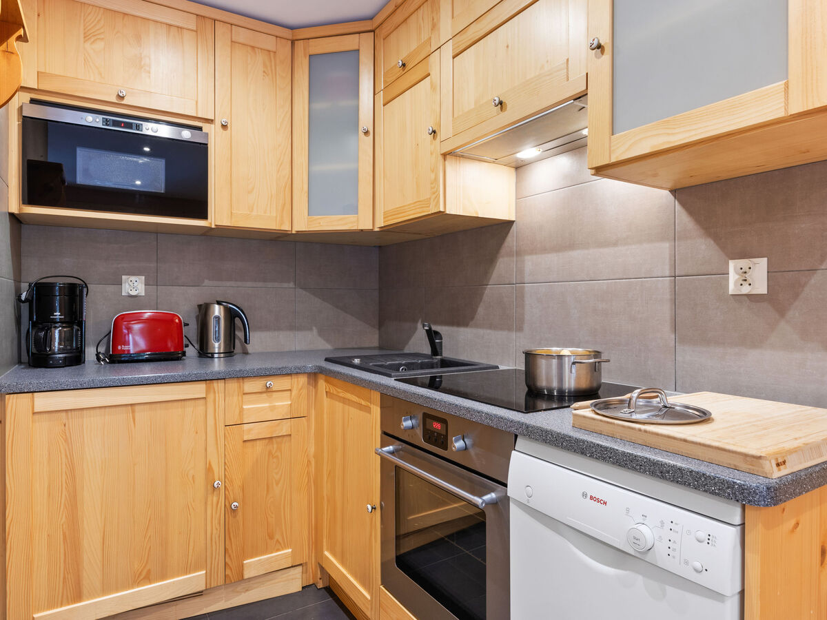 Cuisine ouverte (four, lave-vaisselle, 4 plaques à induction, grille-pain, bouilloire électrique, micro-ondes, cafetière électrique, appareil à raclette).