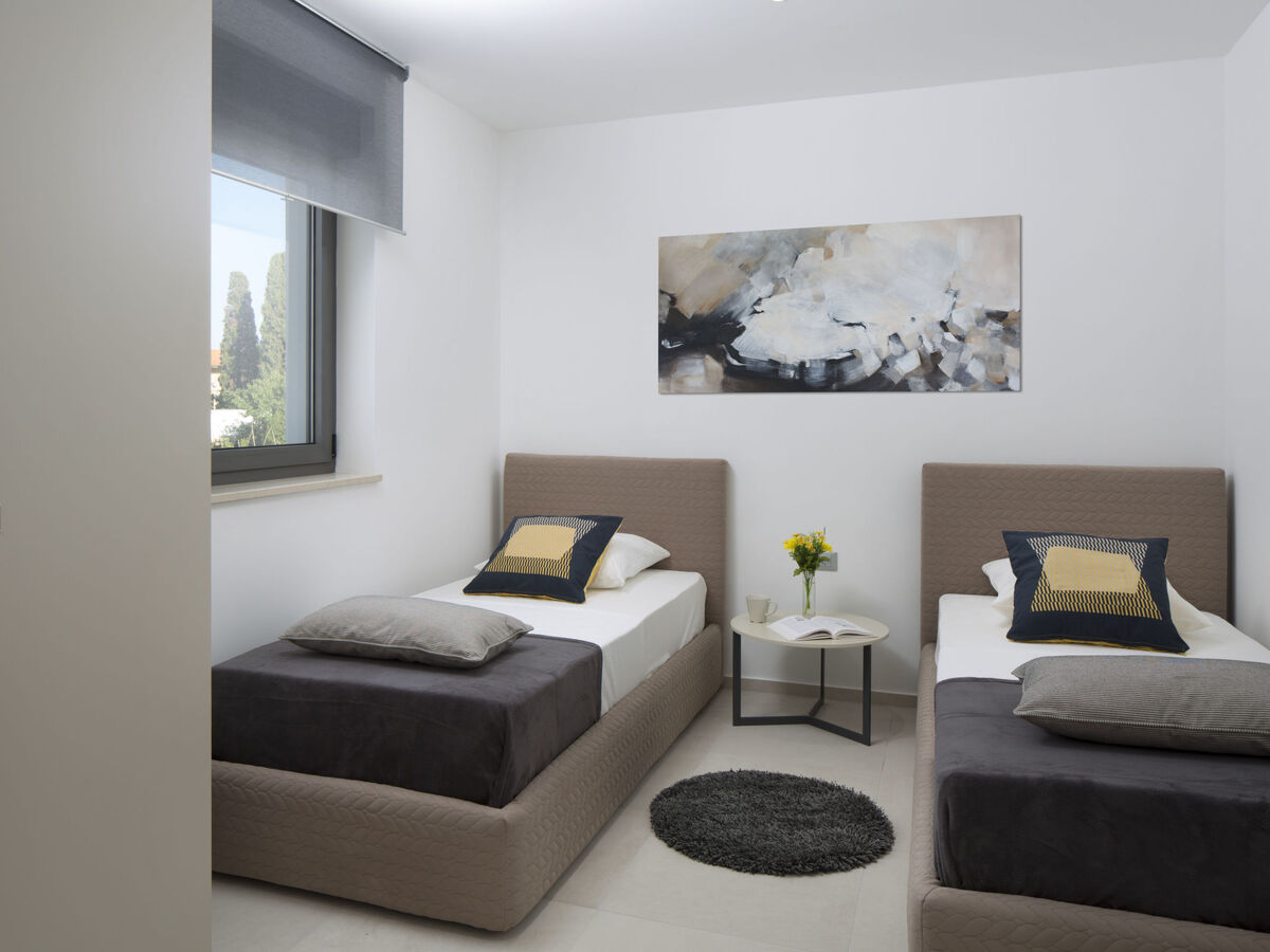 1 chambre avec 2 lits (90 cm, longueur 200 cm), air-conditionné.