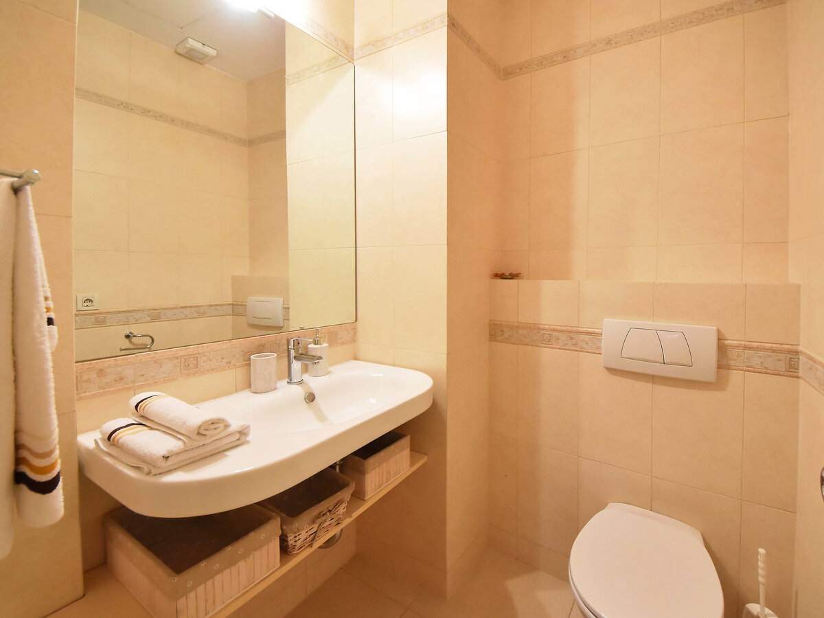 1 chambre avec 1 grand-lit (160 cm, longueur 200 cm), douche/WC.