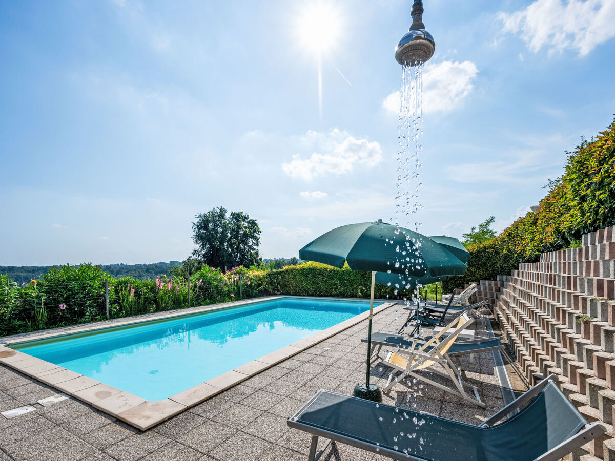 Douche extérieure, tonnelle, terrasse, meubles de jardin, espace barbecue, entretien de la piscine par le propriétaire/jardinier.