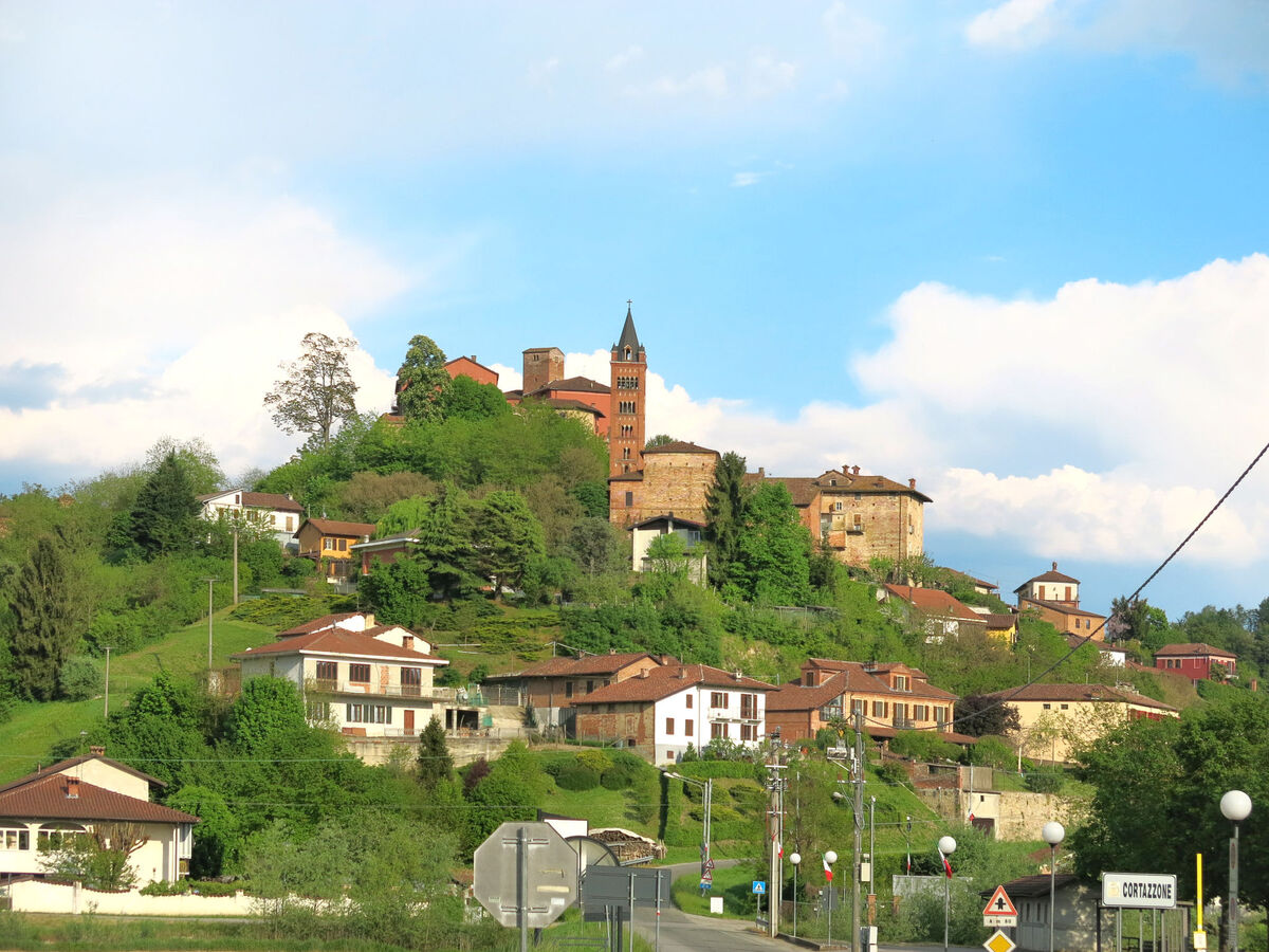 À 1.5 km du centre de Cortazzone, à 20 km du centre d'Asti, à 45 km du centre de Turin, sur une colline, dans la verdure.
