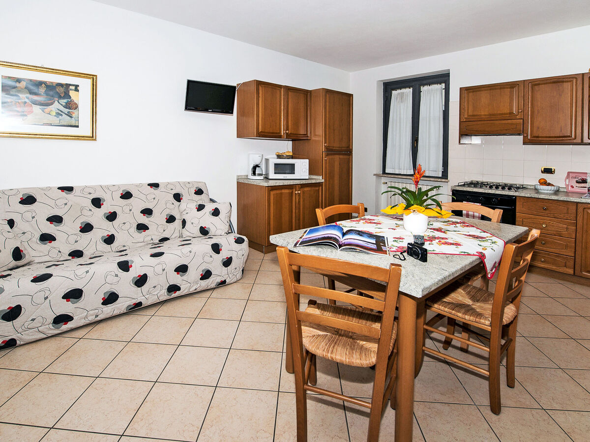 Aménagement confortable: séjour/chambre à coucher avec 1 divan-lit double, table pour les repas et TV (satellite).