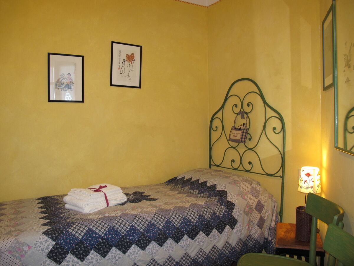 À l'étage supérieur: (escalier en colimaçon) chambre avec passage ouverte avec 1 grand-lit, radio, chaîne stéréo et air-conditionné.