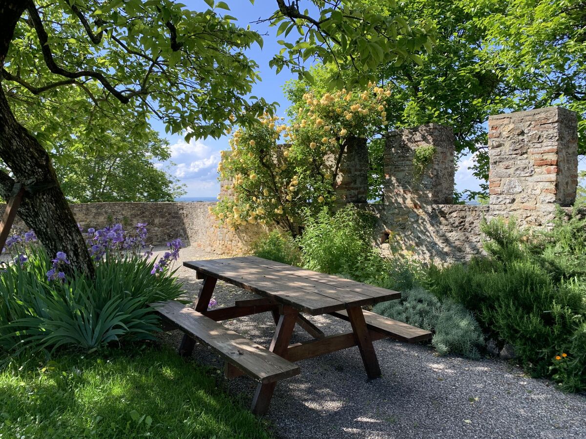 Position panoramique avec superbe vue sur la vallée del Chero et prés, bosquets et arbres fruitiers autour du château.