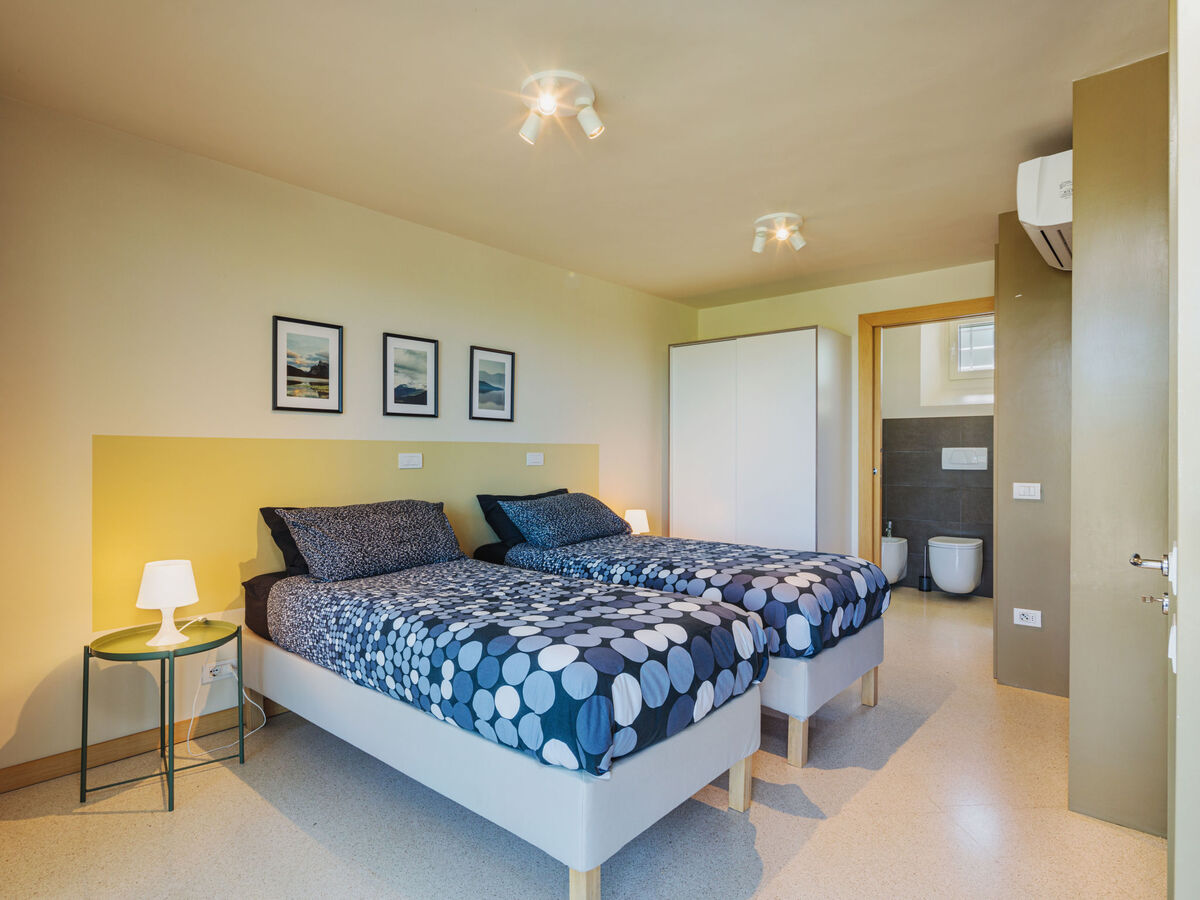 Clair, aménagement agréable et moderne: 1 chambre avec 2 lits et douche/WC.