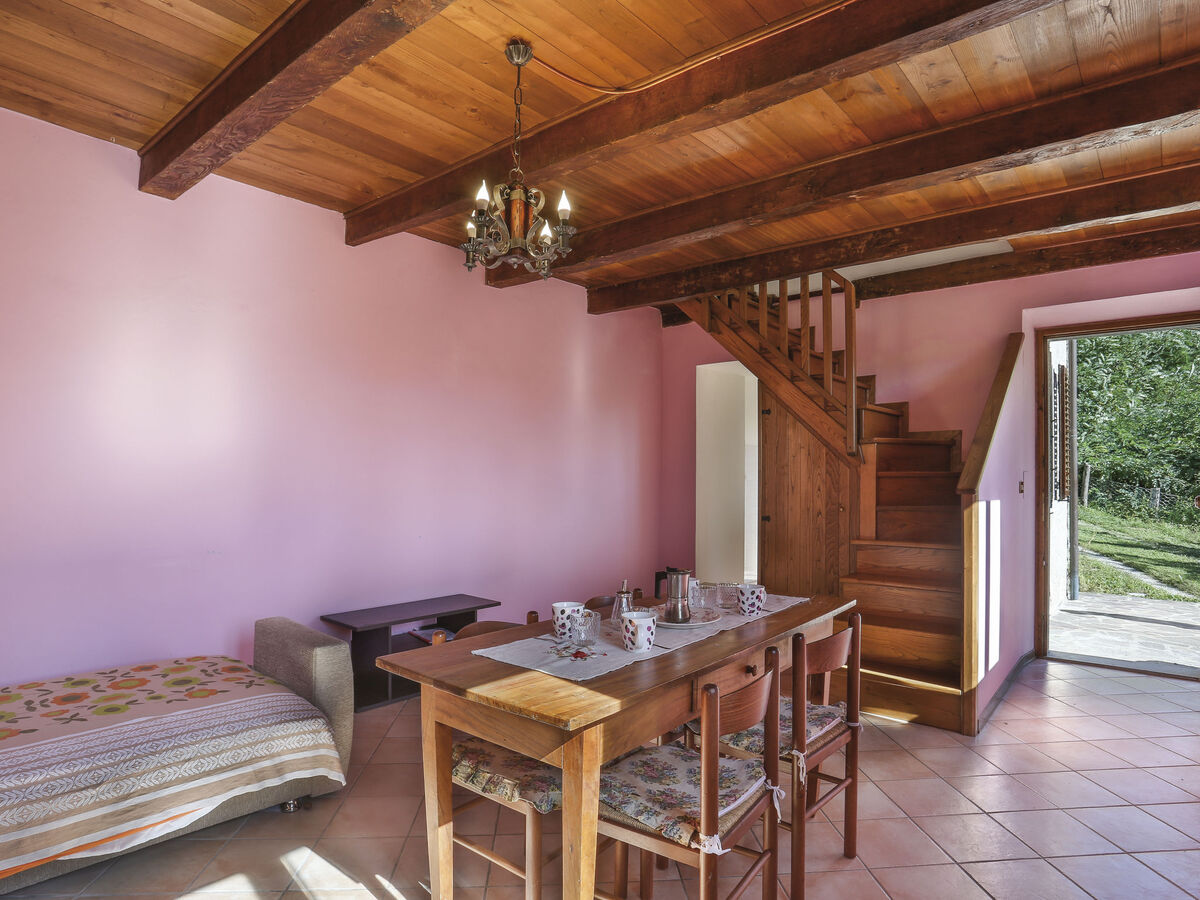 Rénové en 2019, aménagement simple: séjour/chambre à coucher avec 1 divan-lit, cheminée et table pour les repas.