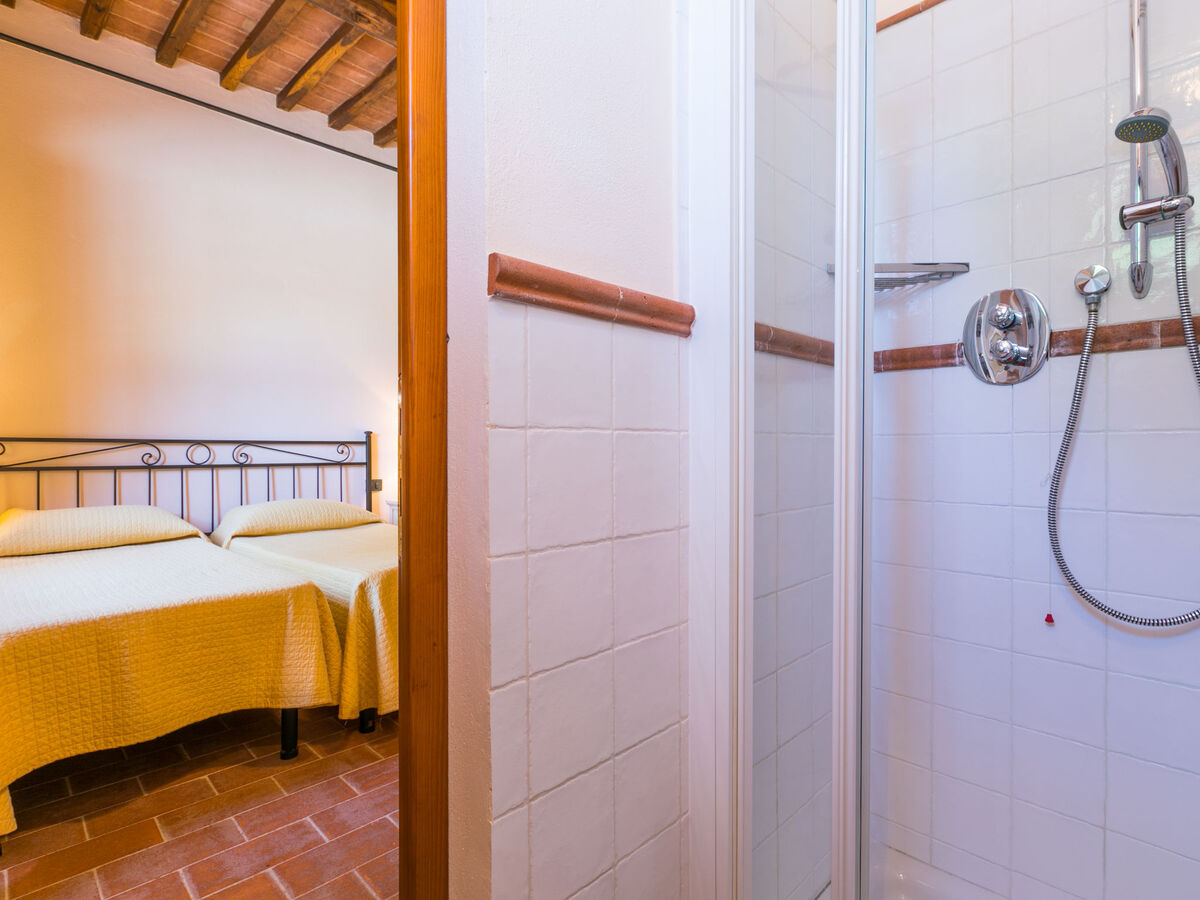 1 chambre avec 2 lits (80 cm), douche/WC.