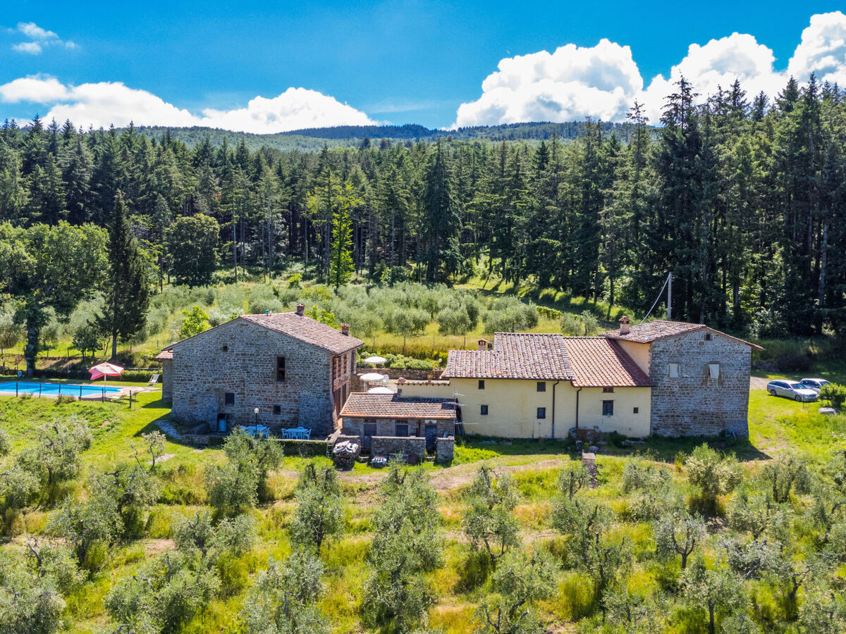 À 13 km du centre de Pontassieve, à 30 km du centre de Firenze, situation tranquille, surélevée sur une colline, dans la verdure.