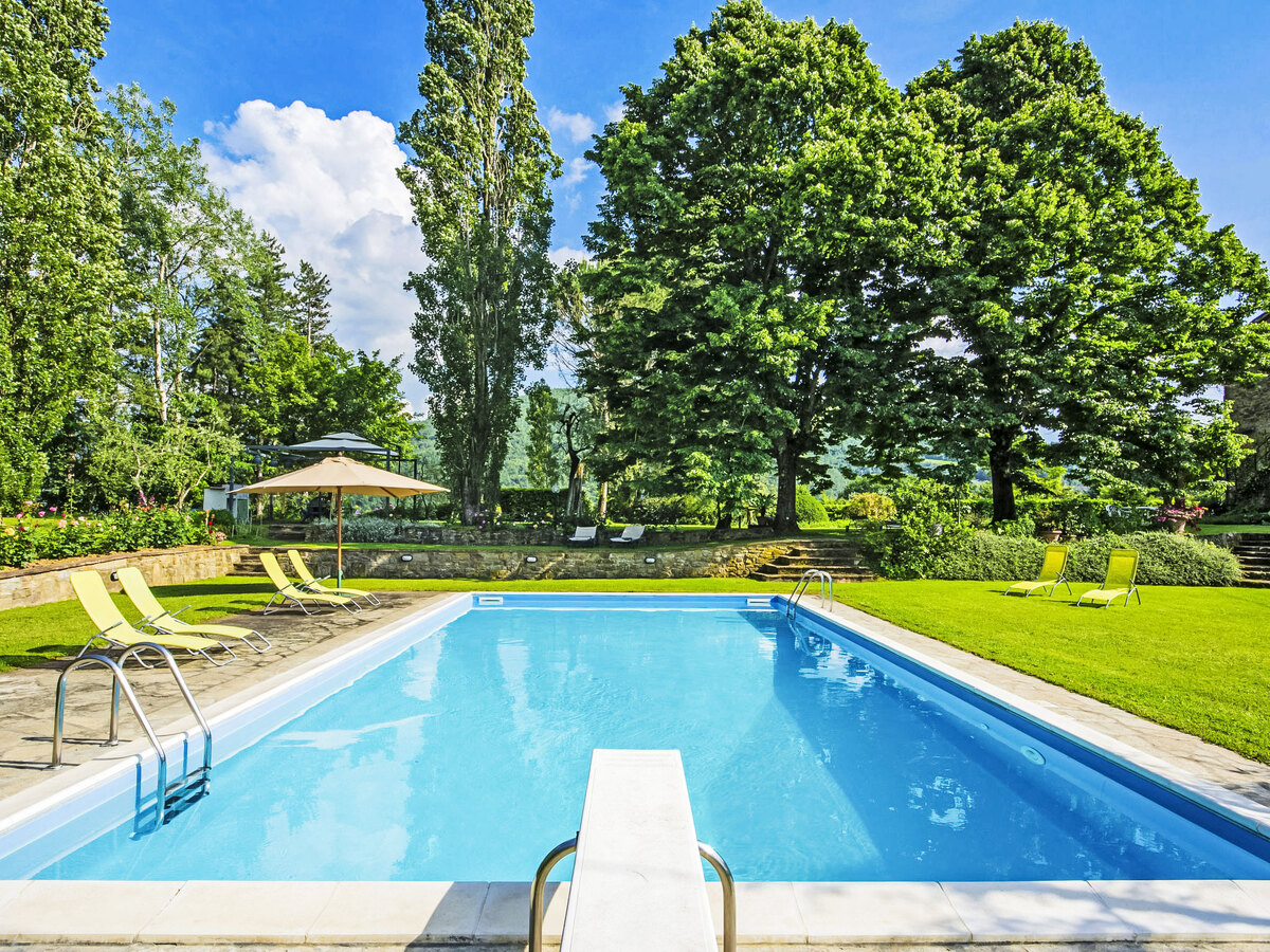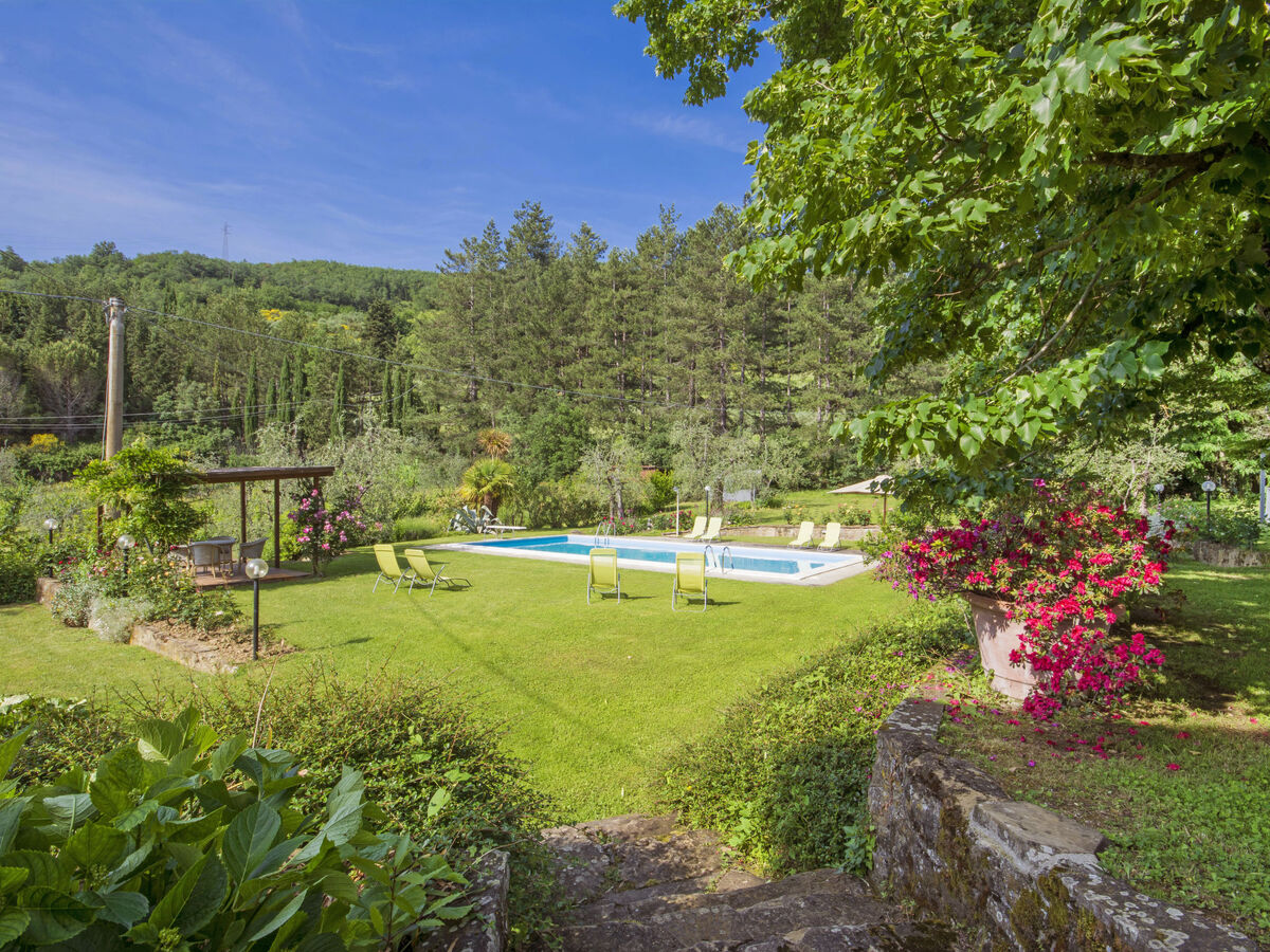 À 3 km du centre de Rufina, à 28 km du centre de Firenze, situation ensoleillée sur une colline, à 39 km du lac, dans la verdure.